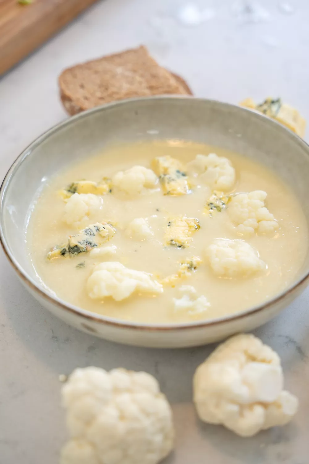 Stappenplan om recept “Bloemkoolsoep met blauwe kaas” te bereiden