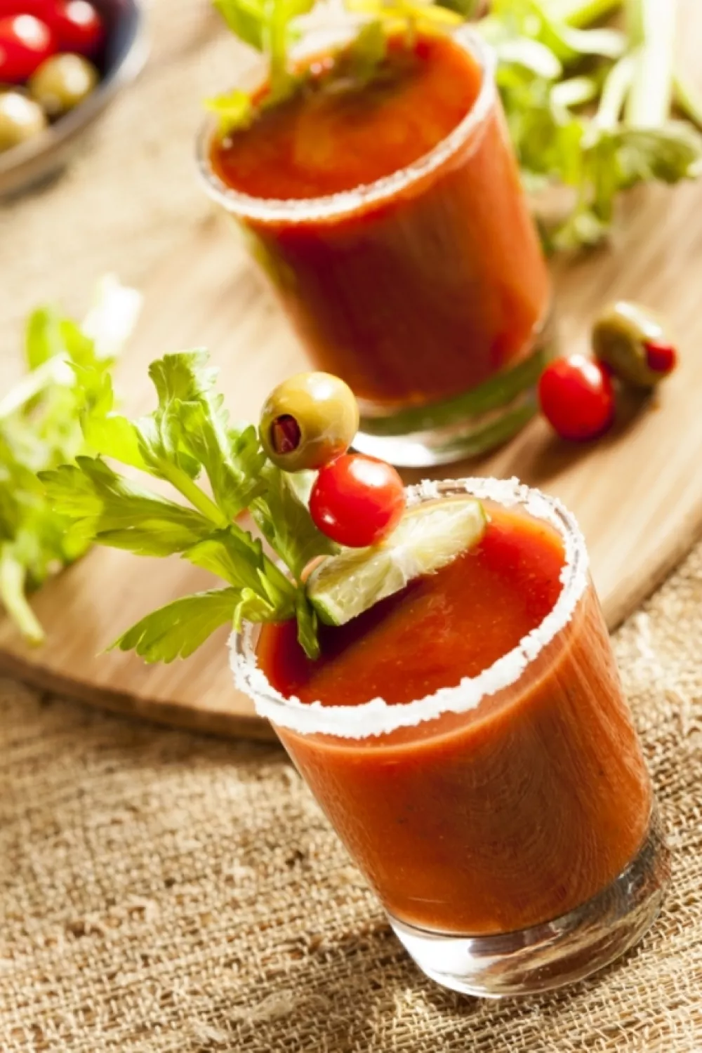 Een pittige, hartige Bloody Mary met rijpe tomaten, ziltige ansjovis en een scheut vodka voor extra body. In de blender fijn gepureerd en gezeefd voor een fluweelachtige textuur, op smaak gebracht met limoen, worcestersaus en tabasco. Perfect als brunchcocktail of zomerse aperitief, geserveerd ijskoud met een selderijstokje.