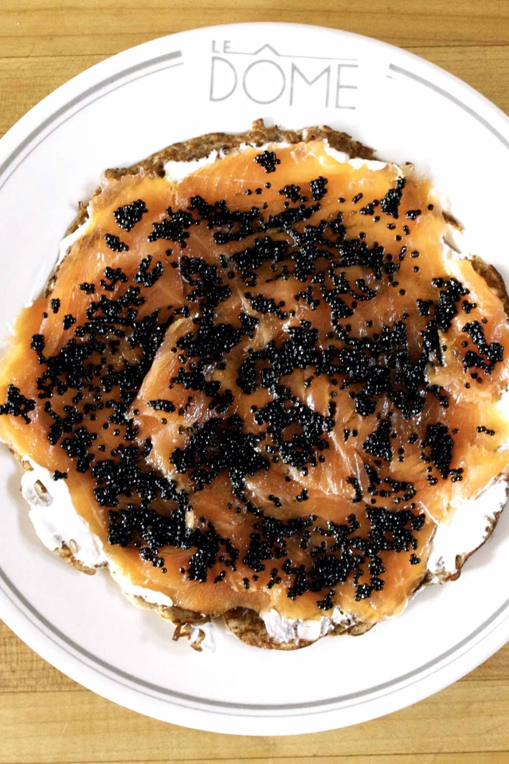 Boekweitpannenkoeken met gerookte zalm en kaviaar