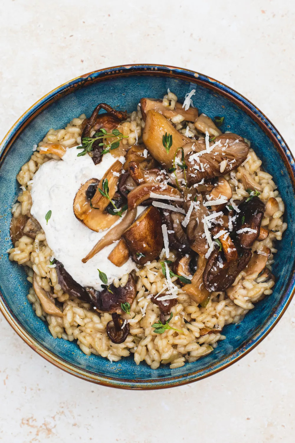 Romige bospaddenstoelenrisotto met een lepeltje truffelricotta: een warm avondmaal waarin gebakken paddenstoelen, risottorijst en pecorino samenkomen. Door de rijst langzaam te garen met witte wijn en bouillon krijgt het gerecht die zijdezachte textuur. Perfect voor herfstige diners of een feestelijk vegetarisch gerecht.