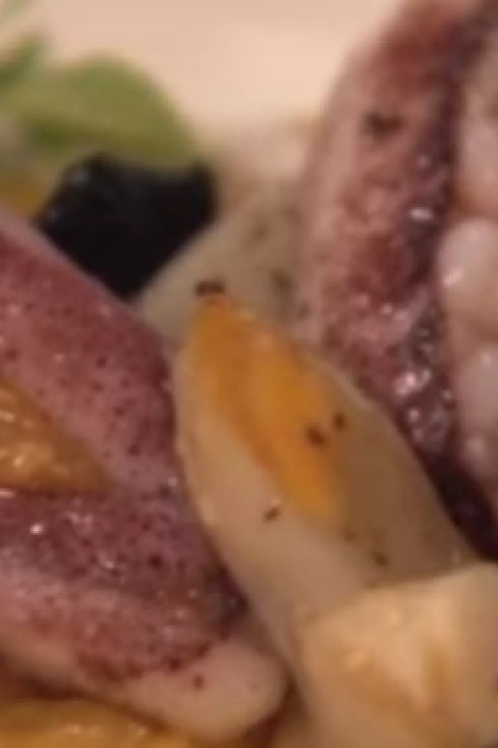 Een elegante, bouillabaisse geïnspireerde risotto met saffraan, bombarijst en geraspte Parmezaan, gecombineerd met kokkels, bouchonmosselen, scheermesjes en kleine calamari en afgewerkt met rouille, gefermenteerde knoflook en basilicum voor een feestelijk visgerecht. De techniek is culinair en verrassend: de bouillabaisse wordt met gelatine ingevroren en via een natte doek geklaard, waarna het resterende concentraat de risotto gaart en de schelpensaus wordt ingekookt en gemonteerd met boter. Serveer als verfijnd hoofdgerecht bij een chique diner of een lente of zomeravond, met warme geklaarde bouillon, lookchips en kerstomaatjes.