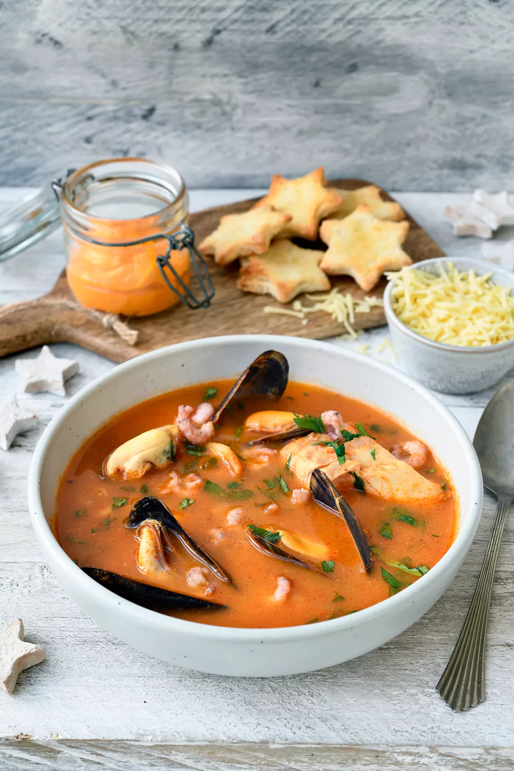 Bouillabaisse met garnalenmayo en sterrentoastjes