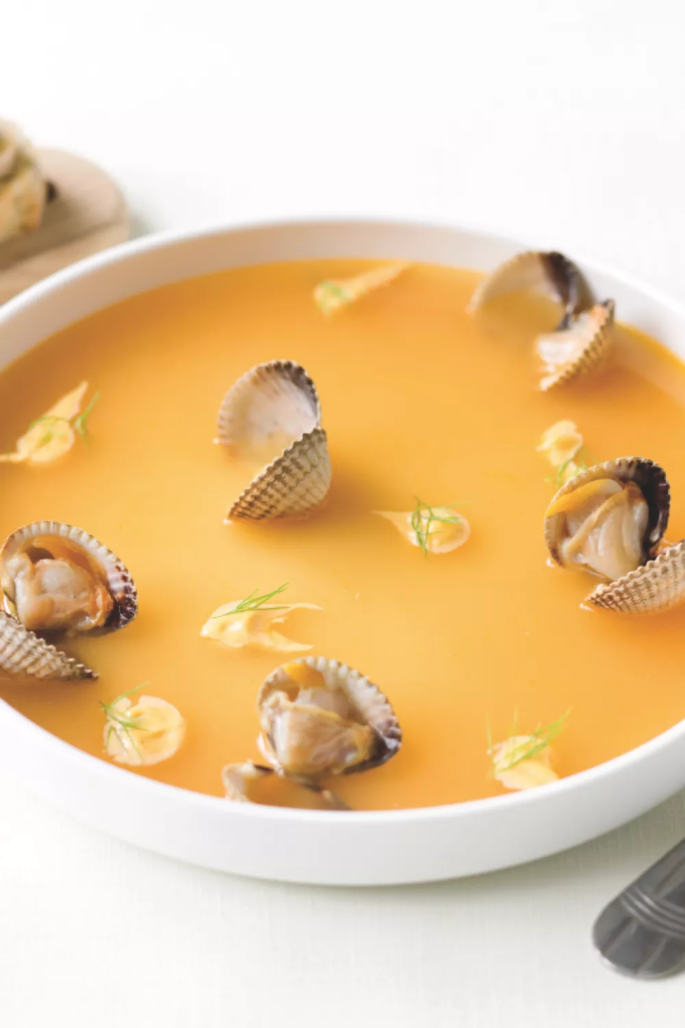 Deze rijke Provençaalse bouillabaisse brengt stukken vis en kokkels samen met de warme tonen van saffraan en een vleug Ricard voor extra diepgang. De vis wordt eerst aangebakken en daarna zachtjes gestoofd in de oven tot de bouillon vol en aromatisch is. Serveer met knapperig geroosterd stokbrood en romige zelfgemaakte rouille voor een hartverwarmende zeevruchtenmaaltijd, perfect voor etentjes of koude avonden.