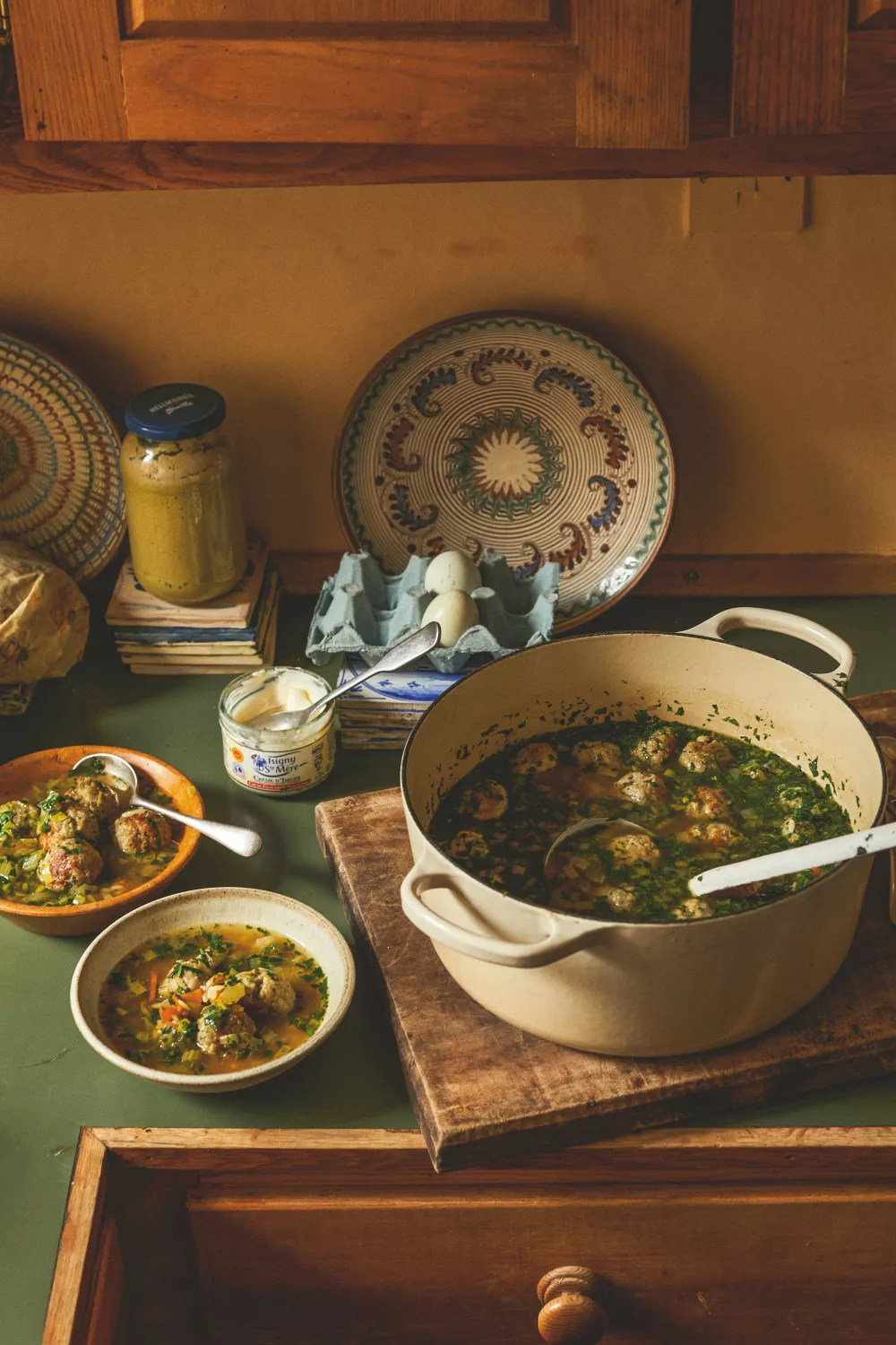 Een heldere kippenbouillon met zachte ricotta-gehaktballetjes, orzo en een frisse mix van dragon, dille en peterselie is het ultieme troostrijke soepgerecht voor koele avonden of lichte lentelunches. Door de balletjes kort goudbruin te bakken en de bouillon zachtjes te laten trekken krijgt de soep veel diepgang en huiselijke smaak. Serveer met een lepel crème fraîche voor extra romigheid en comfort.
