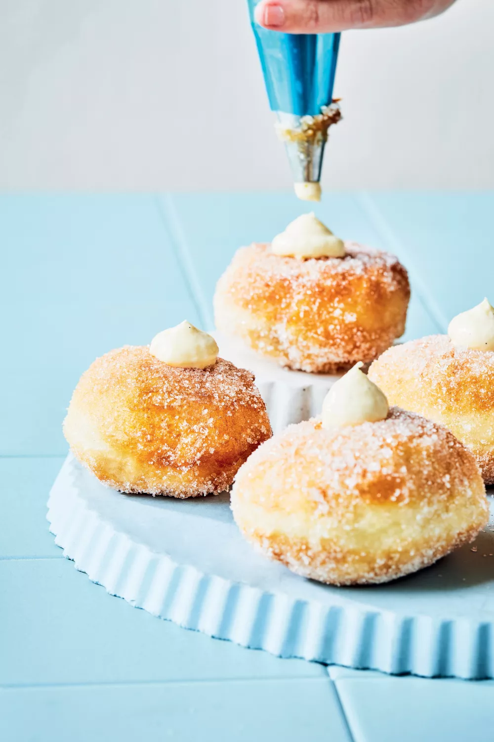 Zachte goudbruine boules de Berlin gevuld met fluweelachtige mascarponemousse en huisgemaakte karamel vormen een onweerstaanbare traktatie voor brunch, dessert of feestelijke gelegenheden. De luchtige gistdeegbollen worden kort gefrituurd en in suiker gerold, waarna ze royaal gevuld worden met romige mascarpone en zijdezachte karamel voor een rijke, contrasterende smaak en textuur. Perfect voor koude dagen of een luxe koffiemoment.