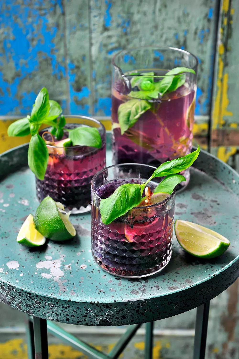 Verfrissende limonade met braambessen en basilicum waarin zomers fruit en een kruidige toets van verse basilicum samenkomen. Versgeblend met limoensap en honing maak je in enkele minuten een geconcentreerde siroop die je met spuitwater en ijsblokjes tot een sprankelend drankje maakt. Perfect voor warme dagen, picknicks en als feestelijke alcoholvrije cocktail.