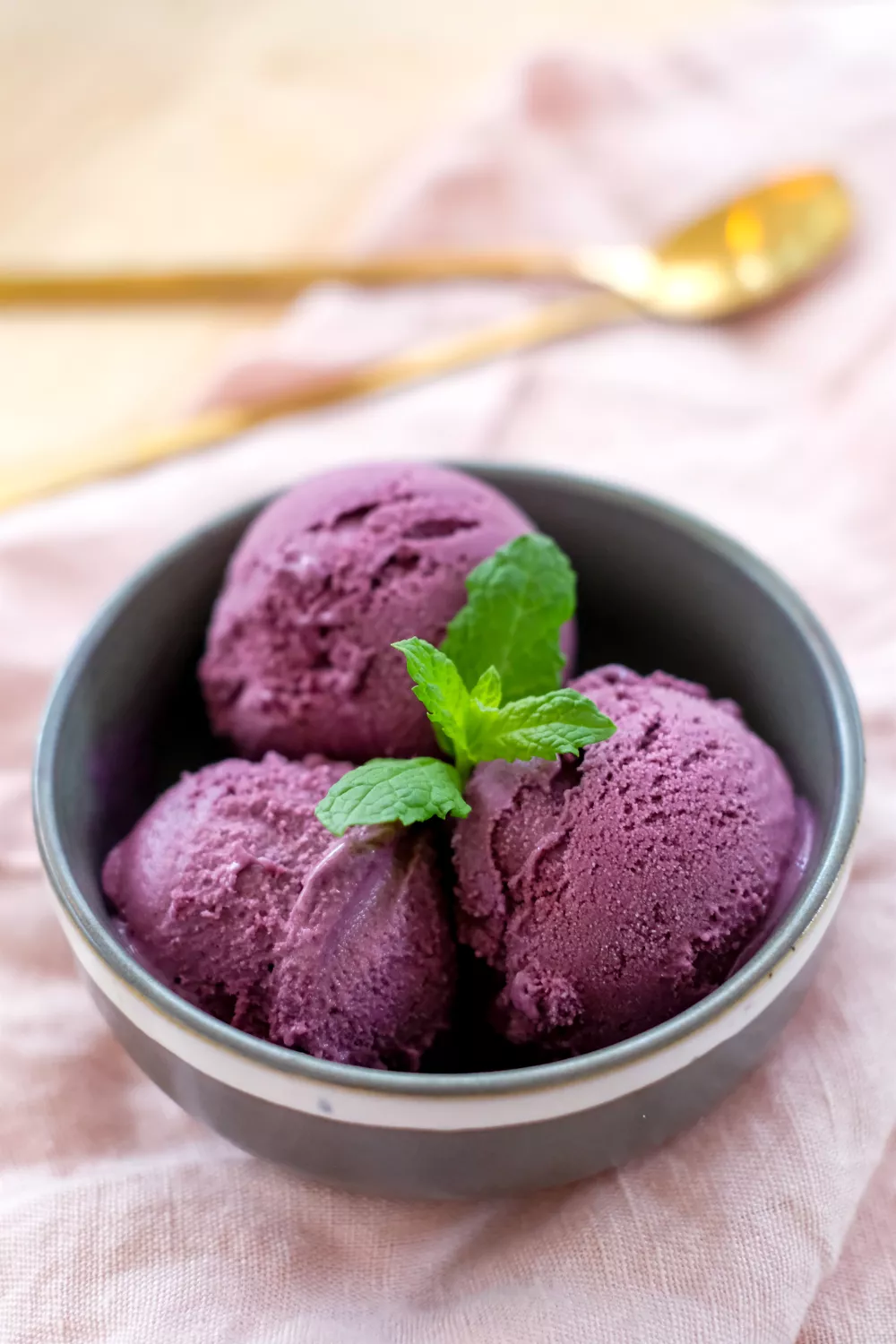 Romig en fruitig braambessenijs van verse braambessen, volle melk, slagroom en eidooiers, met een frisse toets citroensap. De puree wordt fijn geblenderd en gezeefd om de pitjes te verwijderen, daarna luchtig gedraaid in de ijsmachine voor een fluweelzachte structuur. Perfect als zomers dessert bij een barbecue of als verfrissend tussendoortje, eenvoudig van tevoren in de diepvries te bewaren.
