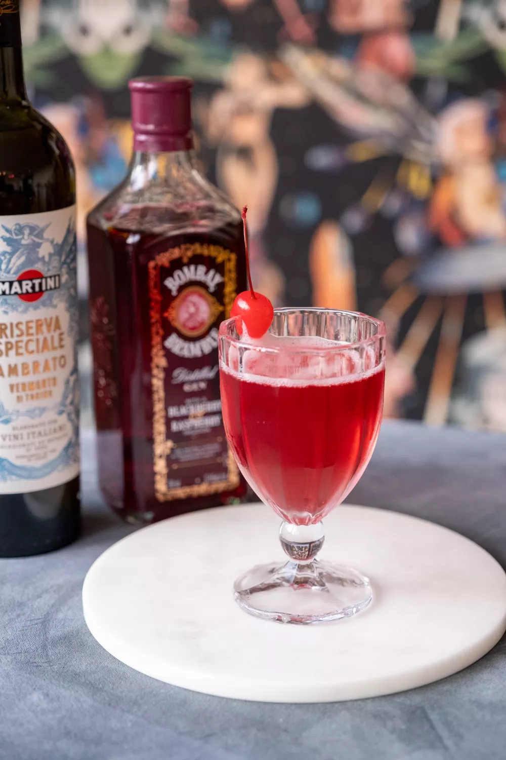 Brambini is een verfrissende, fruitige cocktail met bramenrijke Bombay Bramble, fris citroensap en de subtiele kruidigheid van Martini Riserva Ambrato. Krachtig shaken met muntsiroop en ijs zorgt voor een levendige mint-citrusbalans die in een wijnglas extra elegant oogt, perfect als aperitief of voor zomerse borrels op het terras. Werk af met een maraschinokers voor een zoete toets en fraaie presentatie.
