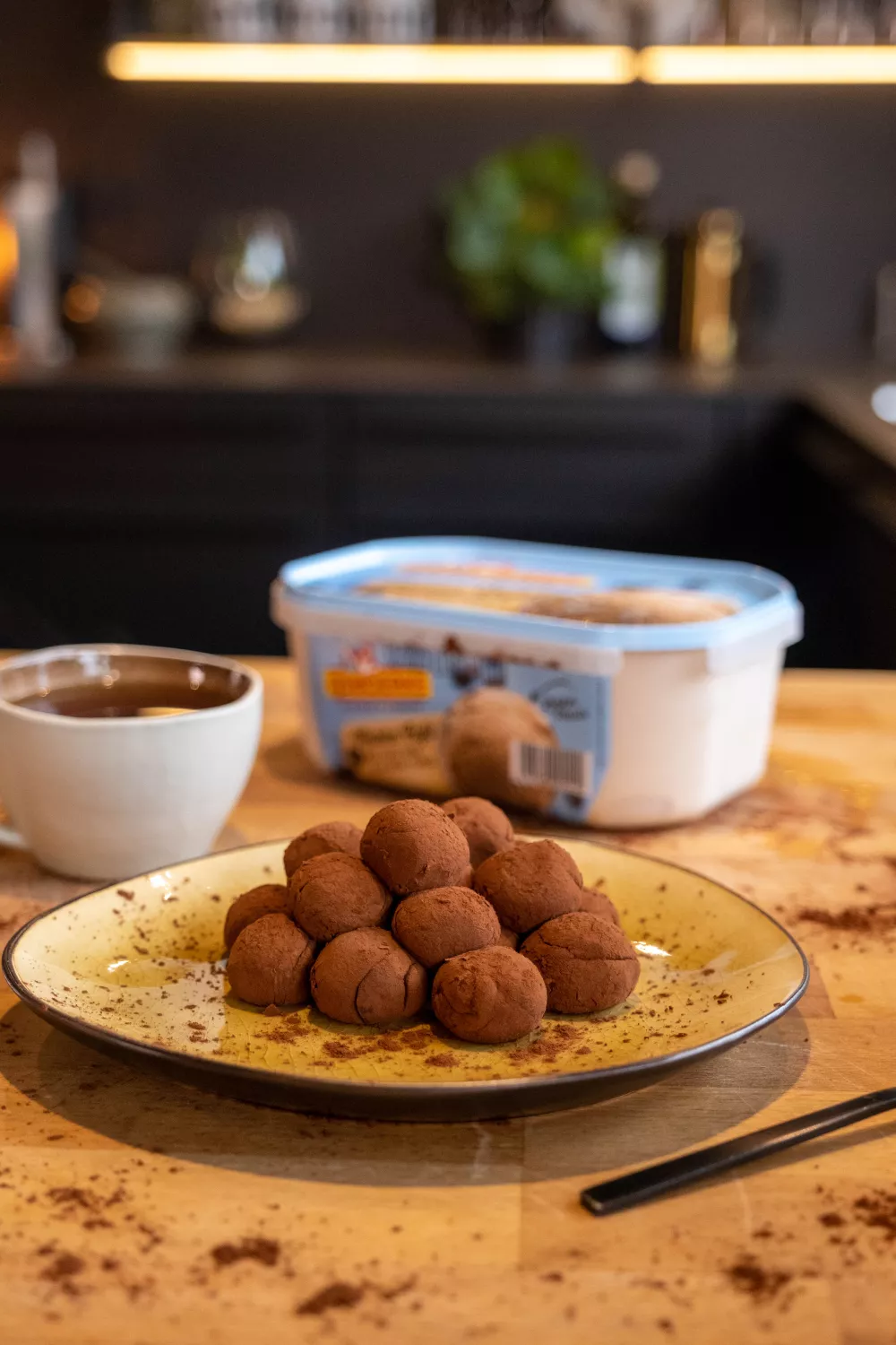 Zacht smeuïge brigadeiros met een mokka twist en een intense chocoladefinish, gemaakt van gecondenseerde melk, boter, roomijs en cacaopoeder. De massa wordt kort ingekookt tot stevig en vervolgens tot truffelgrote bolletjes gerold door cacaopoeder. Perfect als zoet hapje bij koffie of als feestelijk dessert.