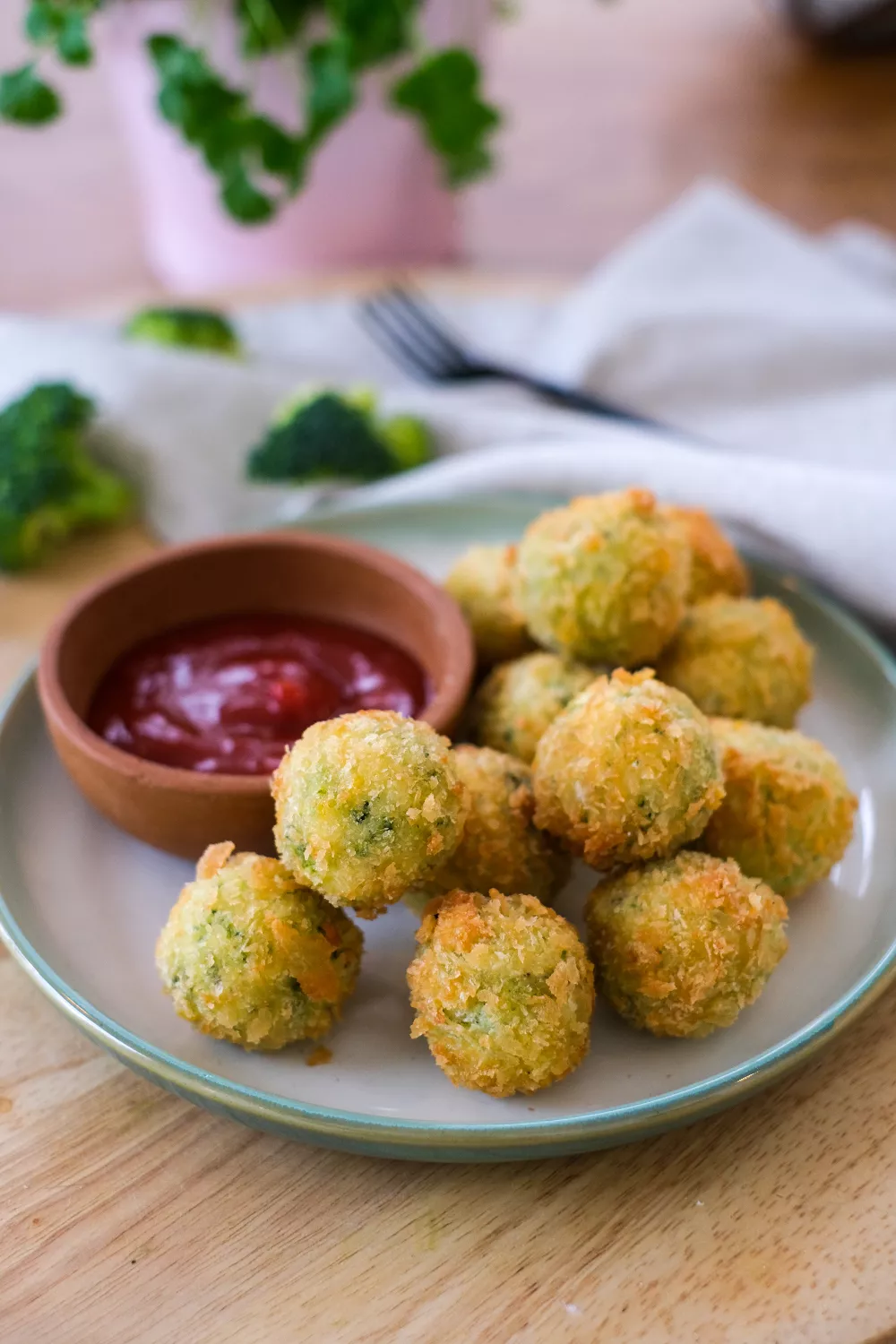 Knapperige broccolikroketjes met romige aardappel en pittige cheddar zijn ideaal als borrelsnack of kleurrijk bijgerecht. Je combineert gestampte aardappelen en fijngesneden broccoli met maïszetmeel en eigeel, vormt kleine balletjes en panereert ze voor een goudbruine, gefrituurde korst. Serveer warm met een frisse dipsaus voor een vegetarische comfortfoodbeleving die iedereen zal bekoren.
