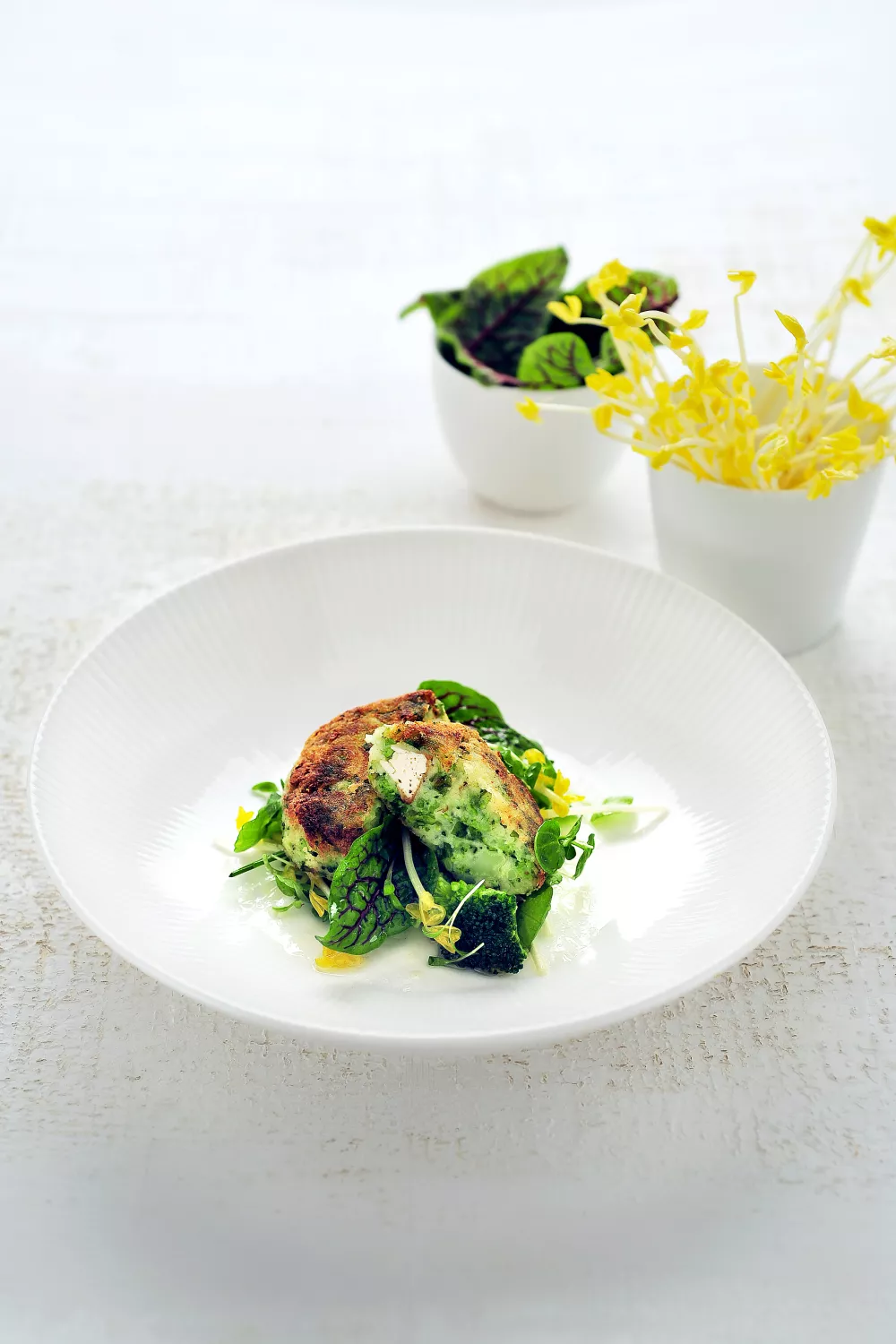 Knapperige broccolikroketjes met tofu en smeuïge aardappelpuree brengen frisse, hartige smaken met een snufje citroen en basilicum. De bereiding combineert blancheren van broccoli, ovengaren van aardappelen, marineren en bakken van tofu en krokend bakken van de kroketjes voor een goudbruine korst. Perfect als lichte lunch, borrelhap of voorjaarsgerecht geserveerd op een pittige salade van tuinkers, waterkers en zuring.