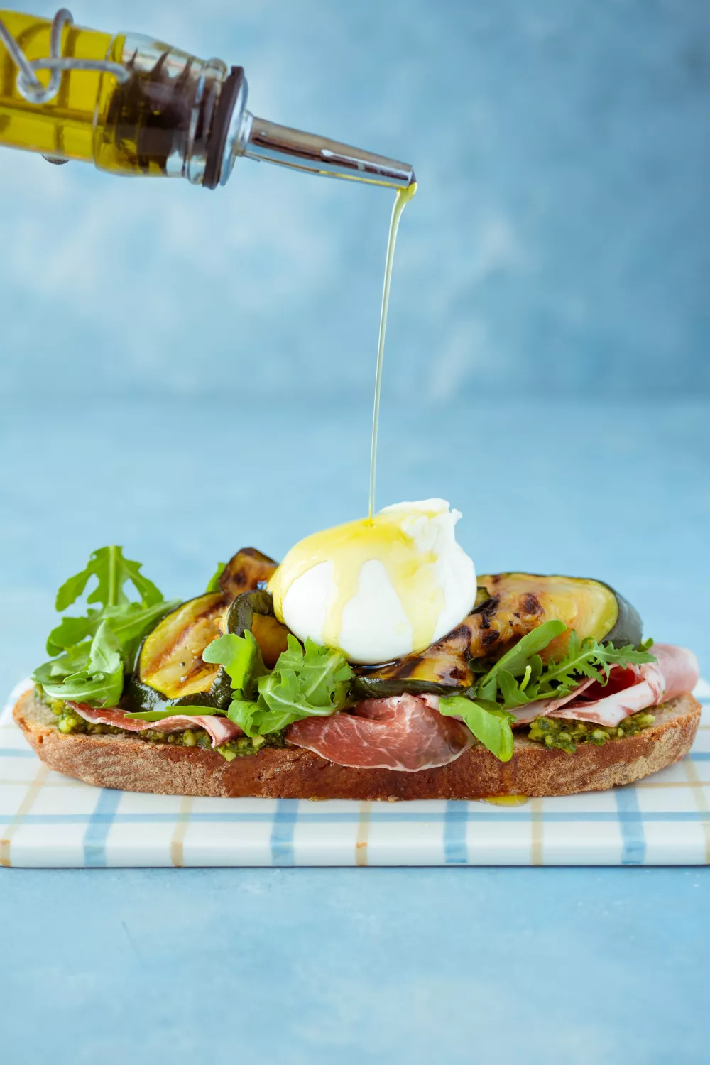 Verdeel de plakjes Coppa di Parma over het broodje en leg de plakken geroosterde courgette erop.