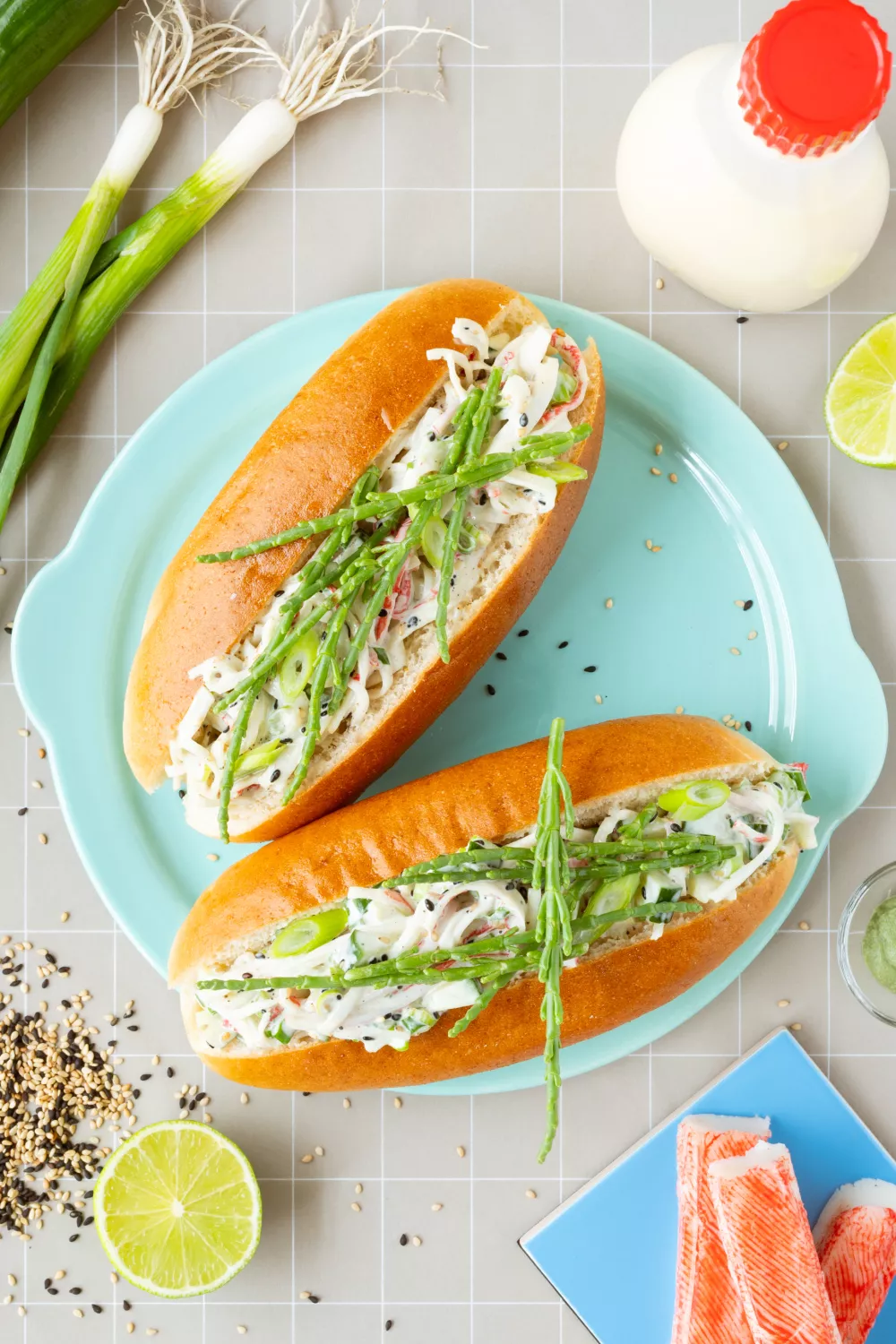 Dit broodje surimi-krabsalade is een snelle en verrassende lunch met een frisse, Japanse twist. De romige krabsalade met Kewpie-mayonaise, wasabi en limoensap combineert perfect met knapperige komkommer en sesamzaad. Dit recept is eenvoudig om zelf te maken en staat in slechts 15 minuten op tafel. Ideaal als originele lunch voor thuis of om mee te nemen naar het werk.