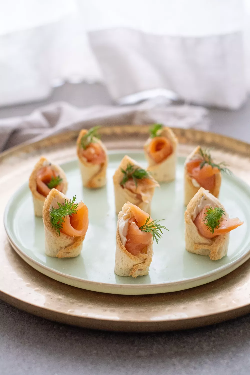Deze knapperige broodtoastjes met romige kruidenkaas en zachte gerookte zalm zijn ideale borrelhapjes voor feestjes en zomerse picknicks. Door de envelopvorm en een korte baktijd in de oven worden ze licht en goudbruin, waarna je ze vult met kaas, zalm en frisse dille. Snel klaar en perfect als voorgerecht of aperitief bij een ontspannen voorjaars- of zomerbijeenkomst.