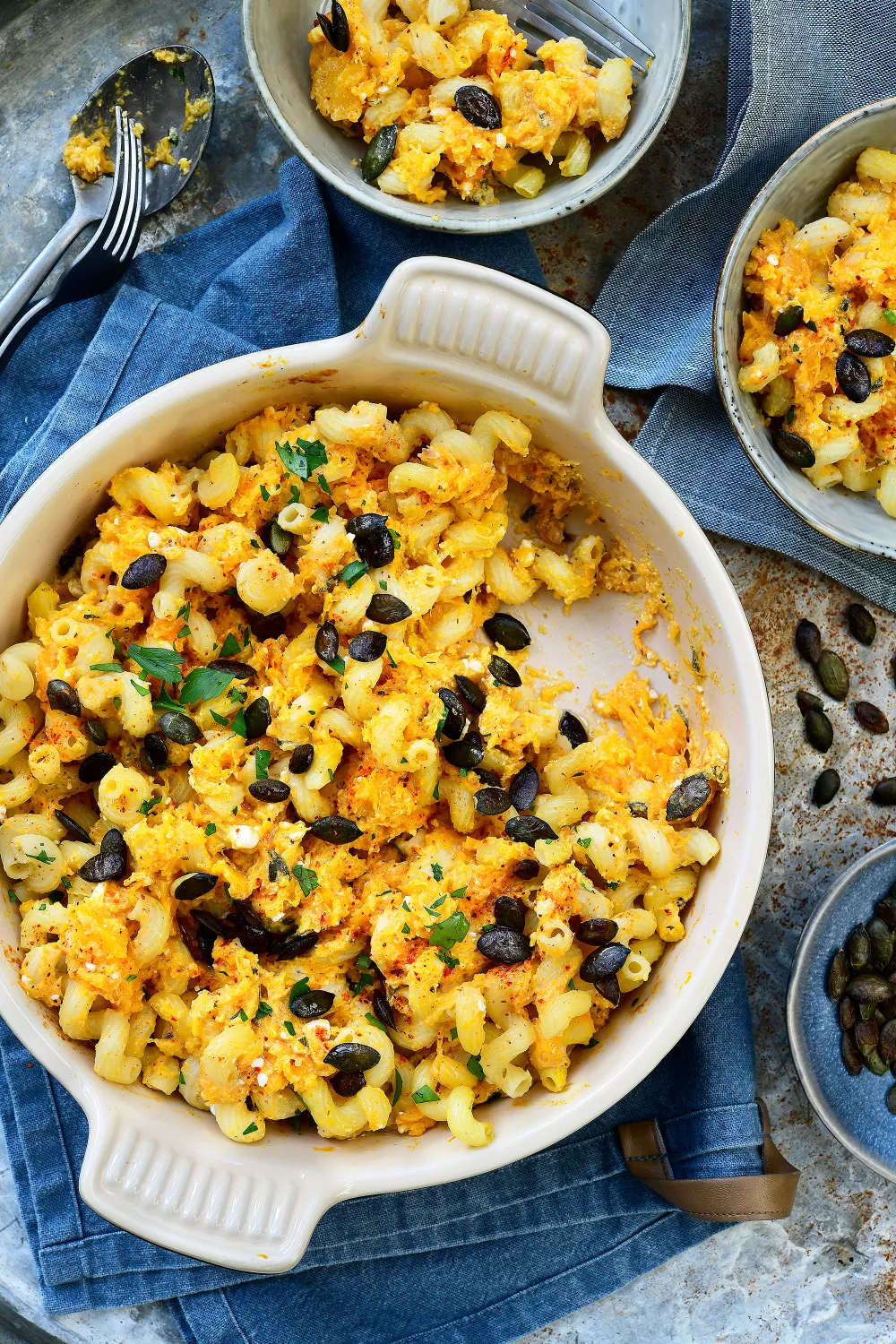 Stappenplan om recept “Butternut squash met feta, pasta en pompoenpitten” te bereiden