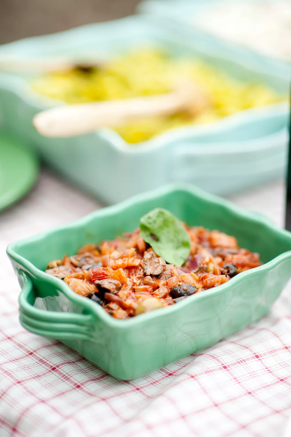 Deze mediterraanse caponata combineert zachte aubergine met uien, selder en wortel in een warme zoetzure saus van witte azijn, suiker en tomatenpuree. Door de groenten rustig te stoven in olijfolie ontstaan rijke, gelaagde smaken die ideaal zijn als bijgerecht bij tapas of voor een zomerse picknick. Serveer lauw of koud op geroosterd brood of als onderdeel van een vegetarisch buffet.