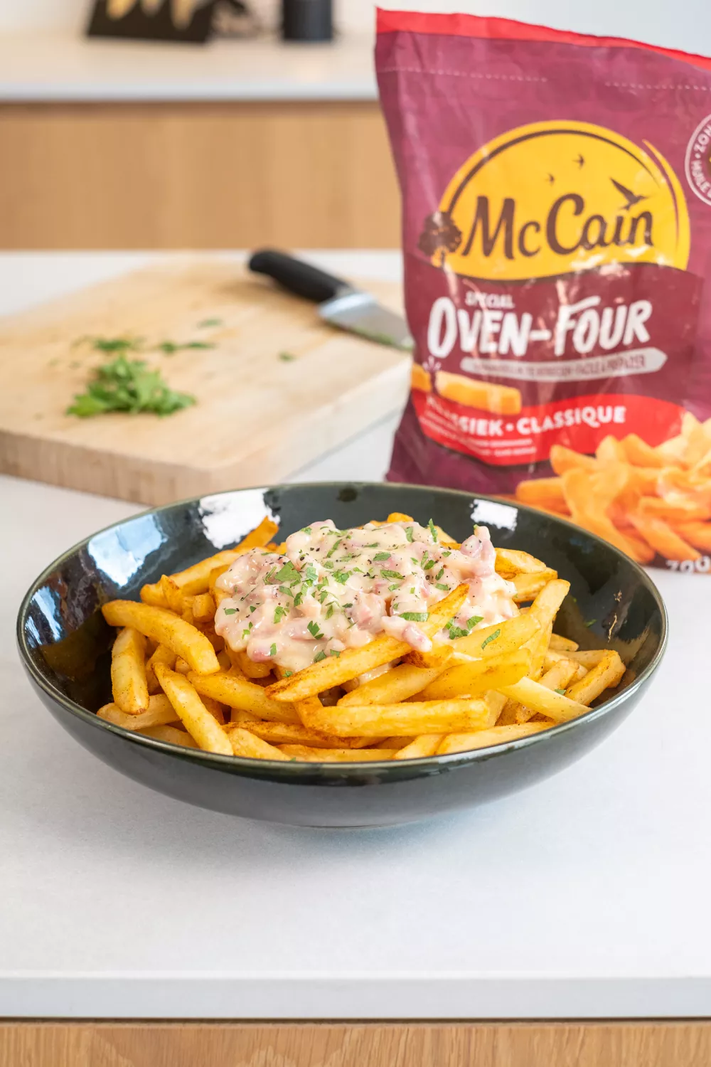 Stappenplan om recept “Carbonara frietjes” te bereiden