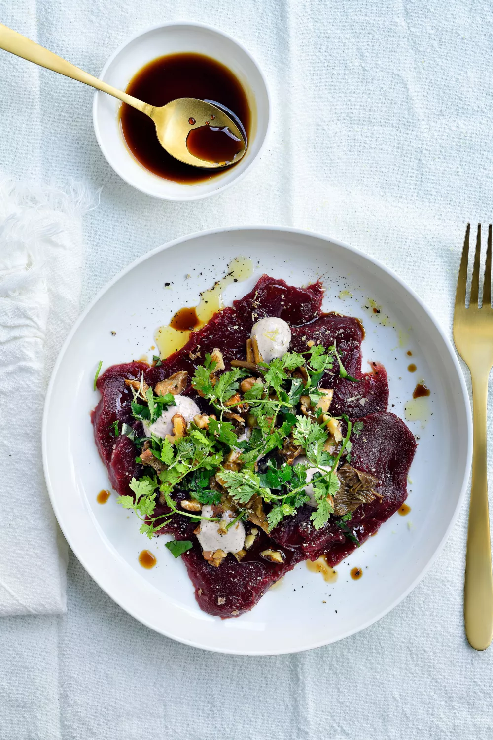 Carpaccio van hert met truffelcrème