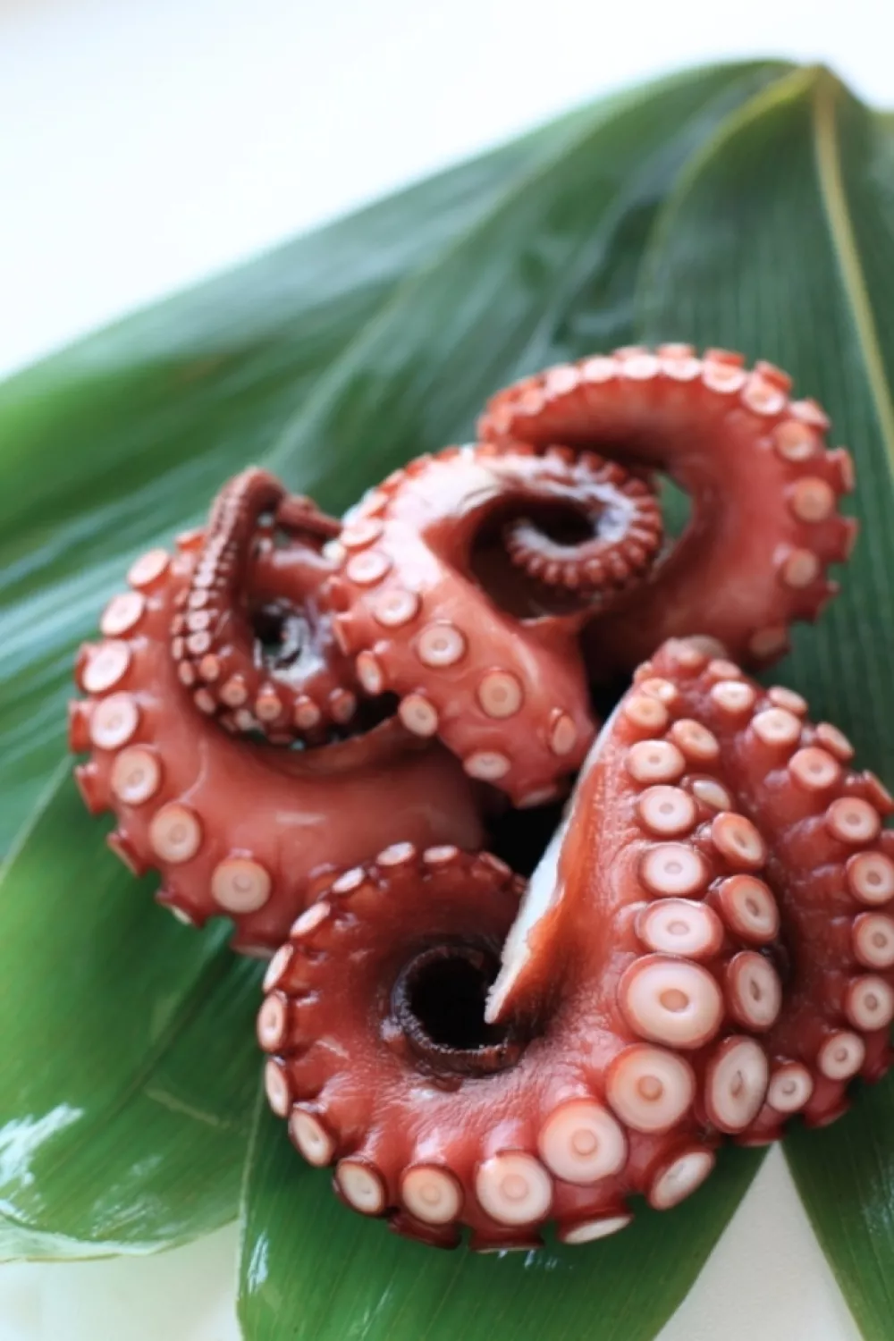 Kook de octopussen anderhalf uur in kokend water. Laat ze vervolgens afkoelen en rol ze op in vershoudfolie. Leg de rolade van octupus minstens twee uur in de diepvries alvorens te gebruiken.