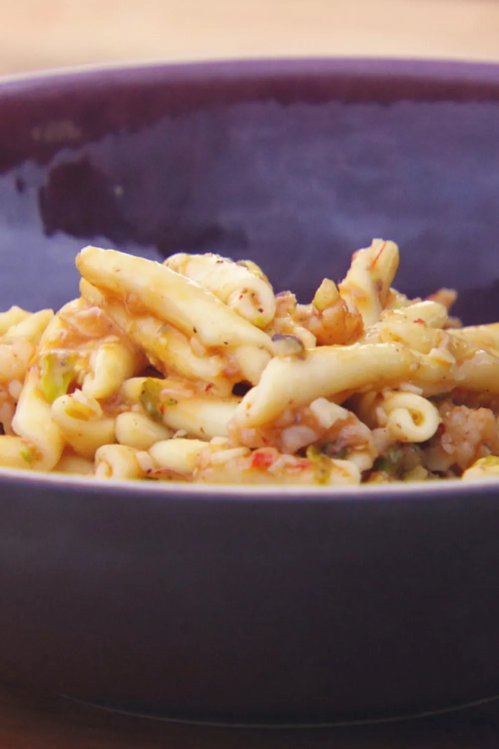 Casarecce met gamba's en pesto van pistache