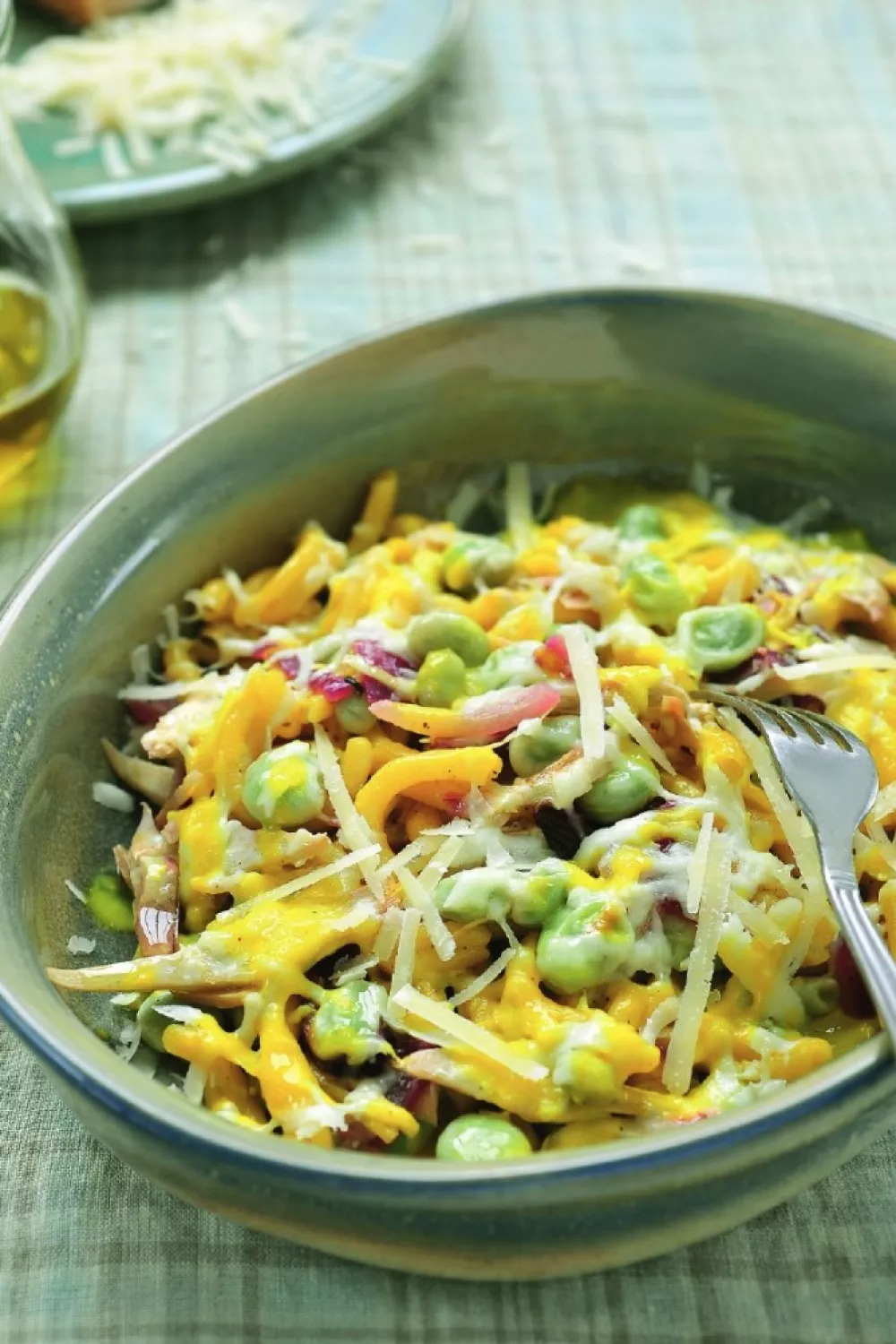 Romige casarecce met tuinbonen, krokant gebakken artisjok en fluweelachtige pecorinocrème verenigt frisse lentearoma's met hartige kaassmaak in een licht Mediterraans pastagerecht. De artisjokken worden in julienne gesneden en samen met ui en knoflook zachtjes gebakken, terwijl de pecorino in een kom boven heet water wordt opgelost tot een gladde saus. Ideaal voor een doordeweekse maaltijd of een ontspannen weekendlunch.