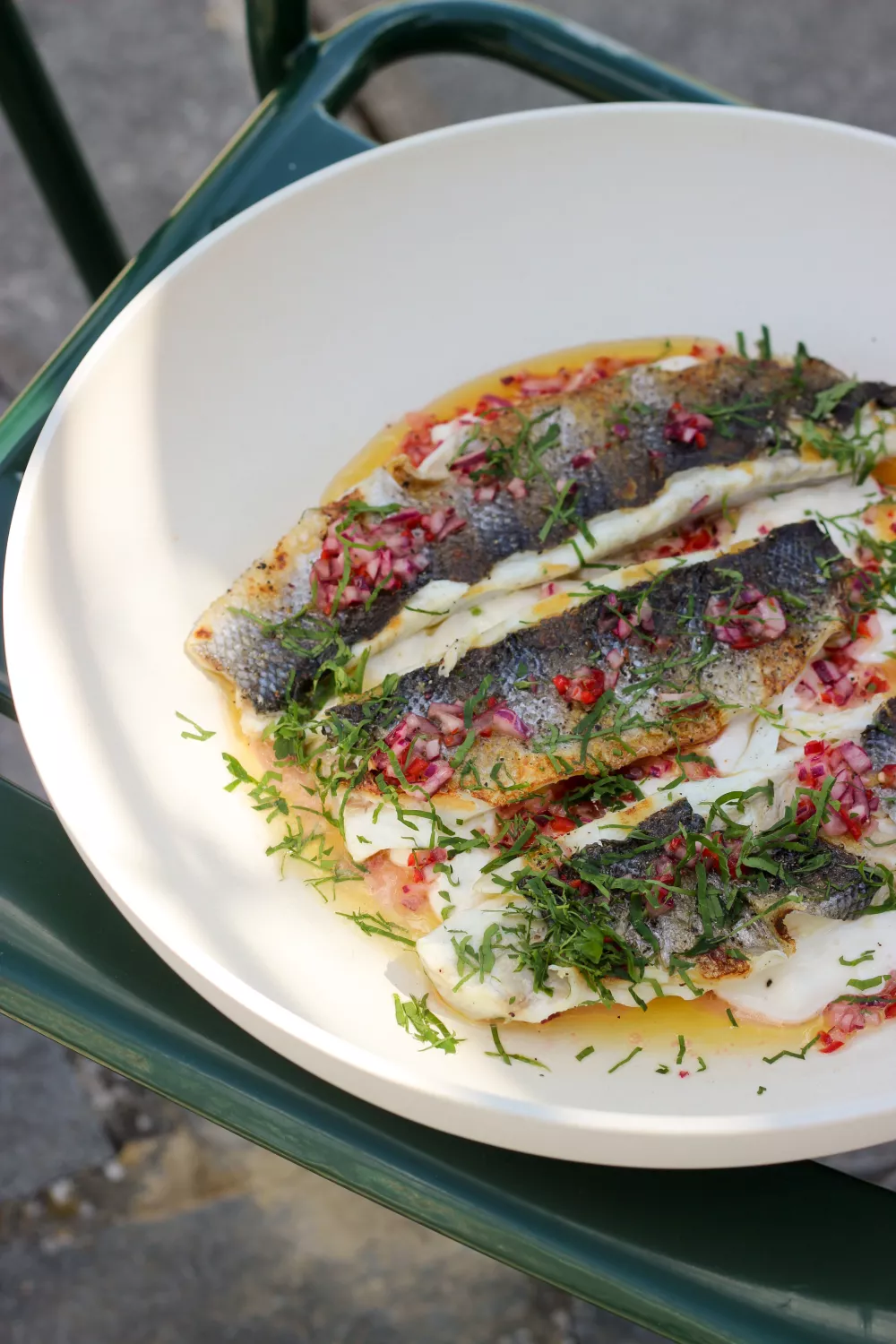 Deze ceviche van gegrilde zeebaars combineert de rokerige bite van kort gegrilde vis met de frisse zuren van citroen en de pittigheid van rode peper. Op een bedje van smeuïge burrata en knapperige rode ui geven olijfolie en verse peterselie zachte, Mediterrane smaken die perfect passen bij zomerse barbecues of een licht visvoorgerecht. Snel te bereiden op de barbecue en ideaal om te delen tijdens warme avonden of als verfijnd lunchgerecht.