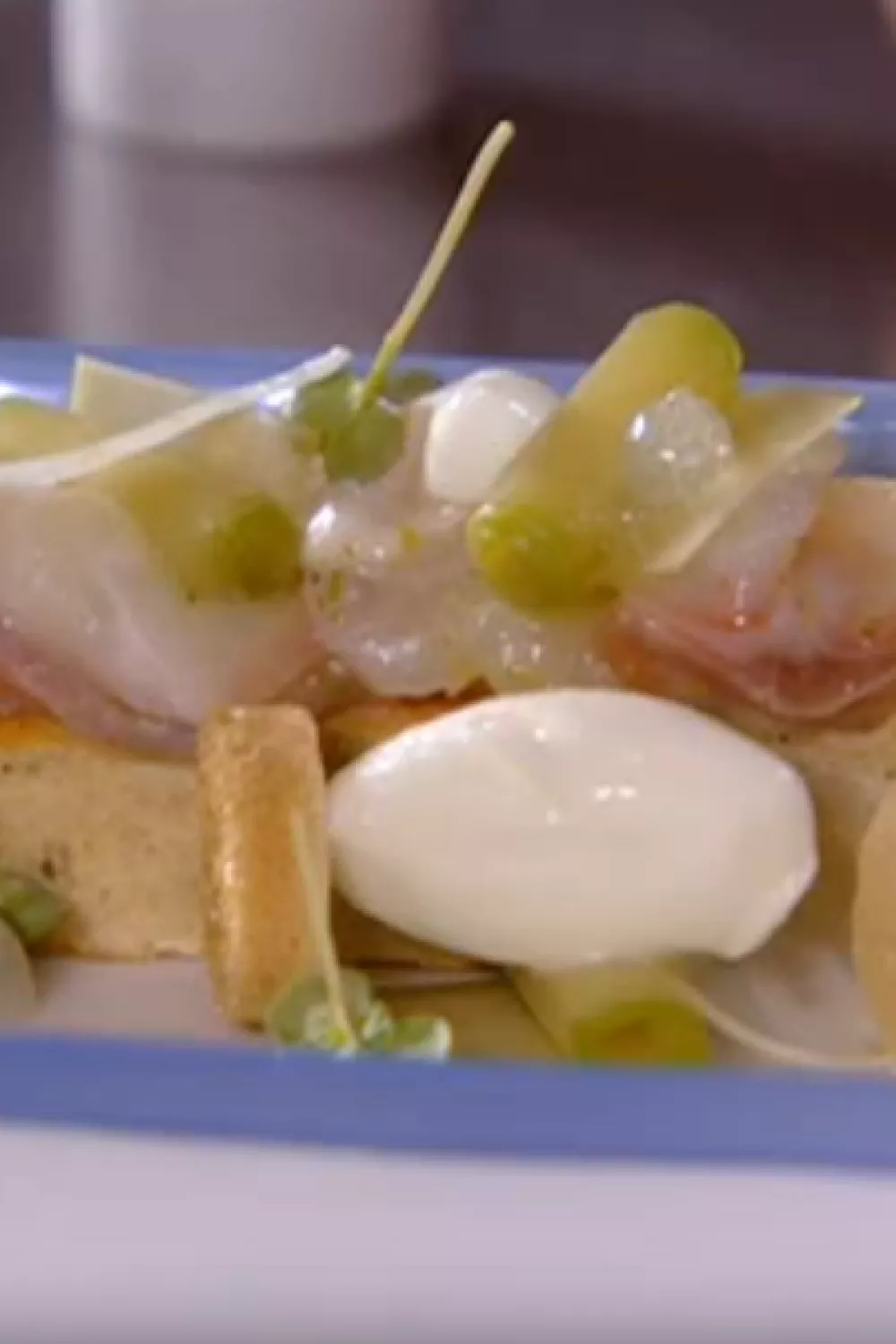 Deze verfijnde ceviche van zeebaars combineert frisse limoensmaak met knapperige venkel en komkommer en de umami van sojasaus voor een licht, modern voorgerecht. Met huisgebakken olijfoliebrood, zijdezachte venkelijs uit de pacojet en delicate sojameringuetjes worden moderne technieken en pure smaken samengebracht tot een feestelijk zomers gerecht.