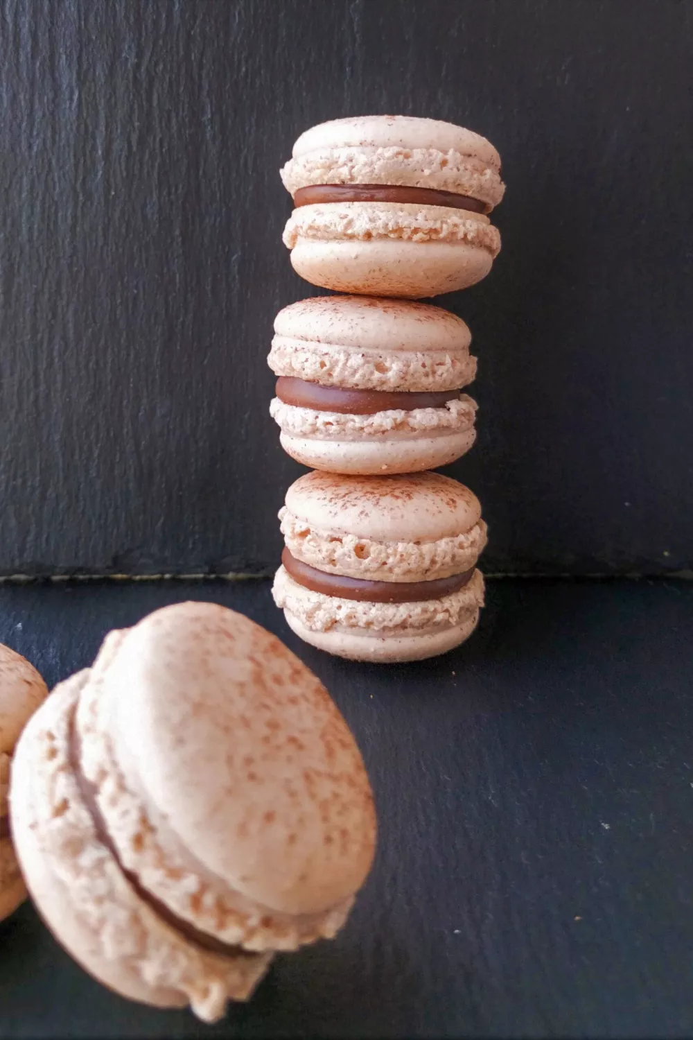 Chai macarons combineren een delicaat amandelbeslag met warme specerijen zoals kaneel, kardemom en gember voor een herfstige of winterse twist op klassieke Franse macarons. De shells worden opgebouwd met Italiaanse meringue en fijngemalen amandelmeel, de vulling is een romige melkchocolade ganache doordrenkt met chai. Ideaal voor high tea, feestjes of een kop warme thee.