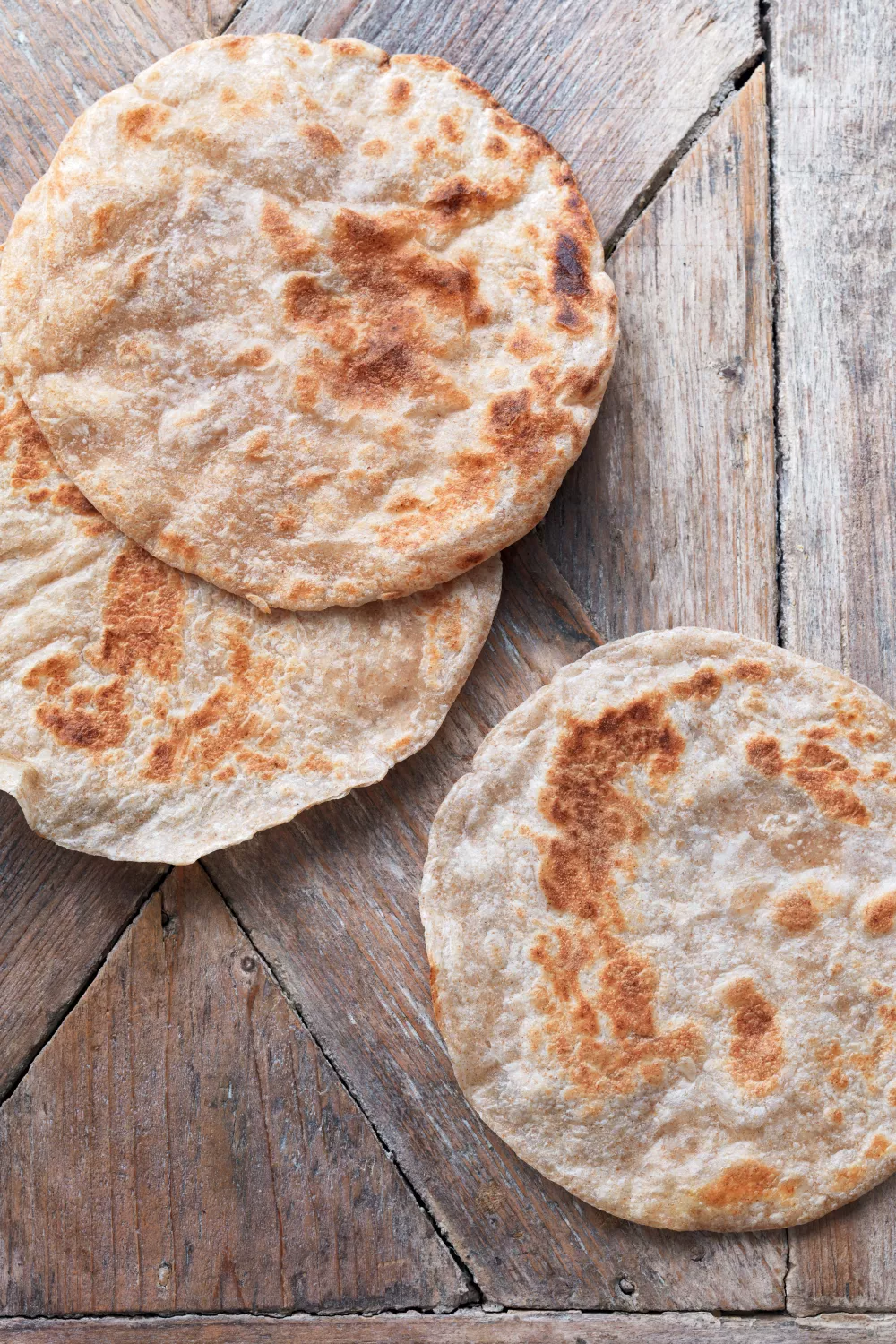 Luchtige, licht geroosterde chapati’s van volkoren chapatimeel brengen warme, nootachtige smaken aan tafel en passen perfect bij curry’s, salades of als stevig lunchbrood. Het eenvoudige deeg van meel, olijfolie en water wordt zacht gekneed, even 30 minuten laten rusten en vervolgens snel gebakken op een hete pan of tava zodat ze heerlijk opbollen en subtiel bruine vlekken krijgen. Ideaal voor een snelle doordeweekse maaltijd, picknick of hartverwarmend winterdiner en makkelijk te variëren met kruiden of roomboter.