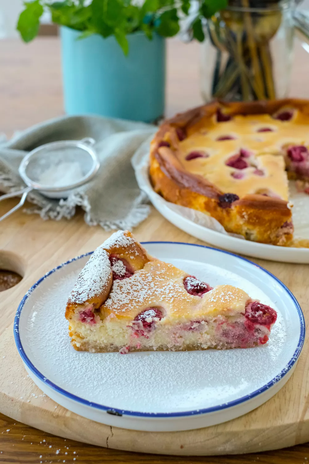 Romige cheesecake met witte chocolade en frisse frambozen op een krokante boterkoekjesbodem, ideaal als feestelijk dessert of zomerse traktatie. De vulling van roomkaas en gesmolten witte chocolade wordt luchtig geklopt, voorzichtig gemengd met verse frambozen en zachtjes gebakken op 160 graden. Laat de taart het liefst een nacht opstijven en werk af met extra frambozen en poedersuiker voor een elegante presentatie.