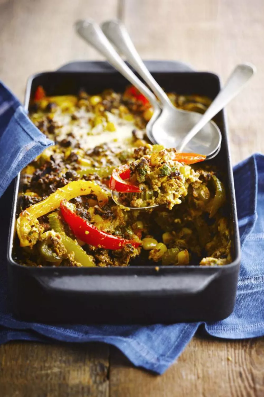 Smeuïge ovenchili sin carne met quorngehakt, kleurrijke paprika en zoete maïs brengt troostrijke vegetarische comfortfood op tafel. Het geroerbakte groentemengsel krijgt een romig jasje van zure room, ei en bloem en gaat kort de oven in zodat de smaken van komijn, paprikapoeder en verse koriander goed intrekken. Perfect als snelle doordeweekse maaltijd of voor een gezellige herfst- of winterfamilieavond.