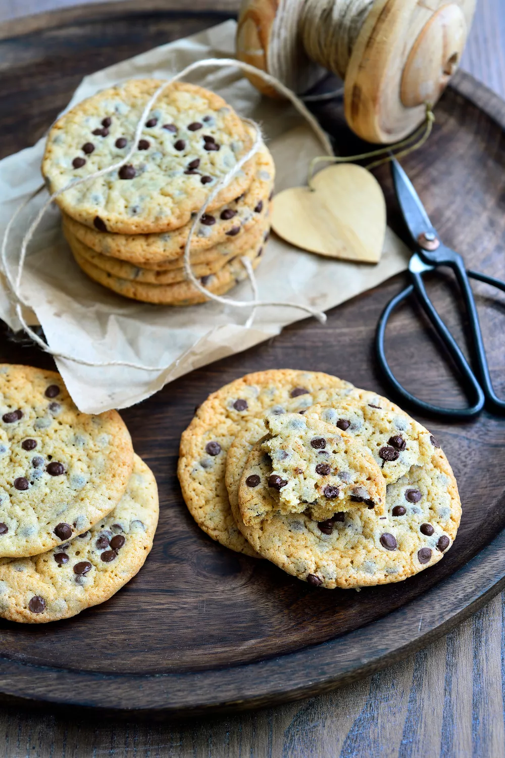 Deze klassieke chocolate chip cookies zijn krokant aan de rand en zacht van binnen, met warme vanilletonen en smeltende stukjes chocolade. Met gezouten boter, kristalsuiker en lichtbruine suiker, vanille en chocolate chips klop je snel een romig deeg, bolletjes rollen en 12 minuten in de oven op 190 graden bakken. Ideaal als gezellig tussendoortje bij koffie of als traktatie voor feestjes en koude dagen.