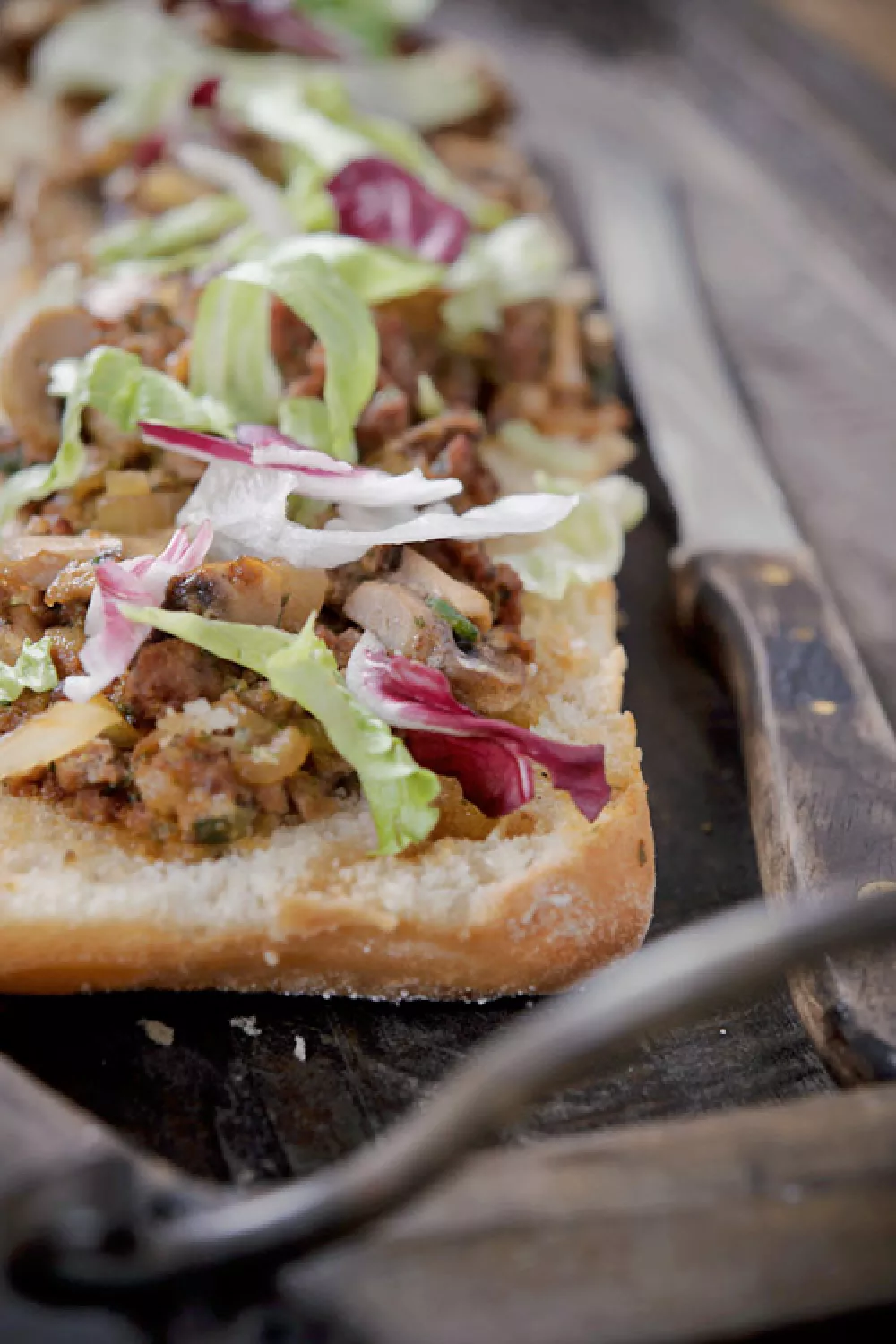 Een warme ciabatta gevuld met kruidig rundsgehakt, gebakken champignons en een romig eimengsel, in de oven goudbruin en krokant gebakken. Perfect als stevige lunch, gezellige borrelhap of snelle doordeweekse avondmaaltijd, en ideaal in de herfst wanneer paddenstoelen op hun best zijn. De bereidingswijze is eenvoudig: vlees en groenten aanbakken, het eiermengsel erdoor laten stollen en het brood vullen voor het bakje in de oven.