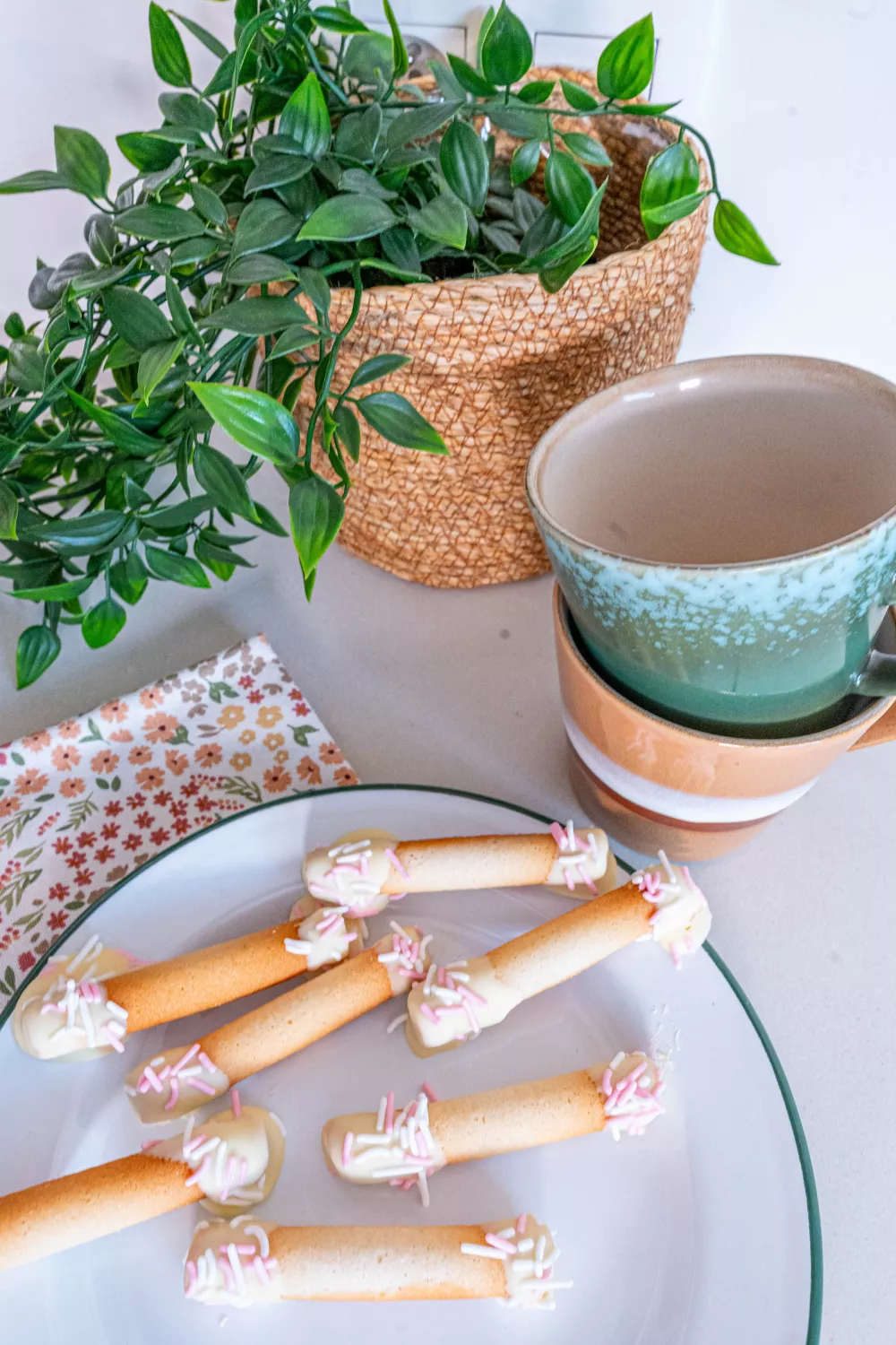 Verras iemand met deze vrolijke complimentkoekjes: krokante sigaarkoekjes met een lief briefje, afgewerkt met romige speculaaspasta, gesmolten witte chocolade en kleurrijke sprinkles. De simpele technieken zoals rollen, dopen en au bain marie smelten maken ze een snelle traktatie of persoonlijk cadeau voor een feestje, sinterklaas of een gezellige winterse middag. Lichtzoet en knapperig zijn ze perfect om iemand mee op te vrolijken.