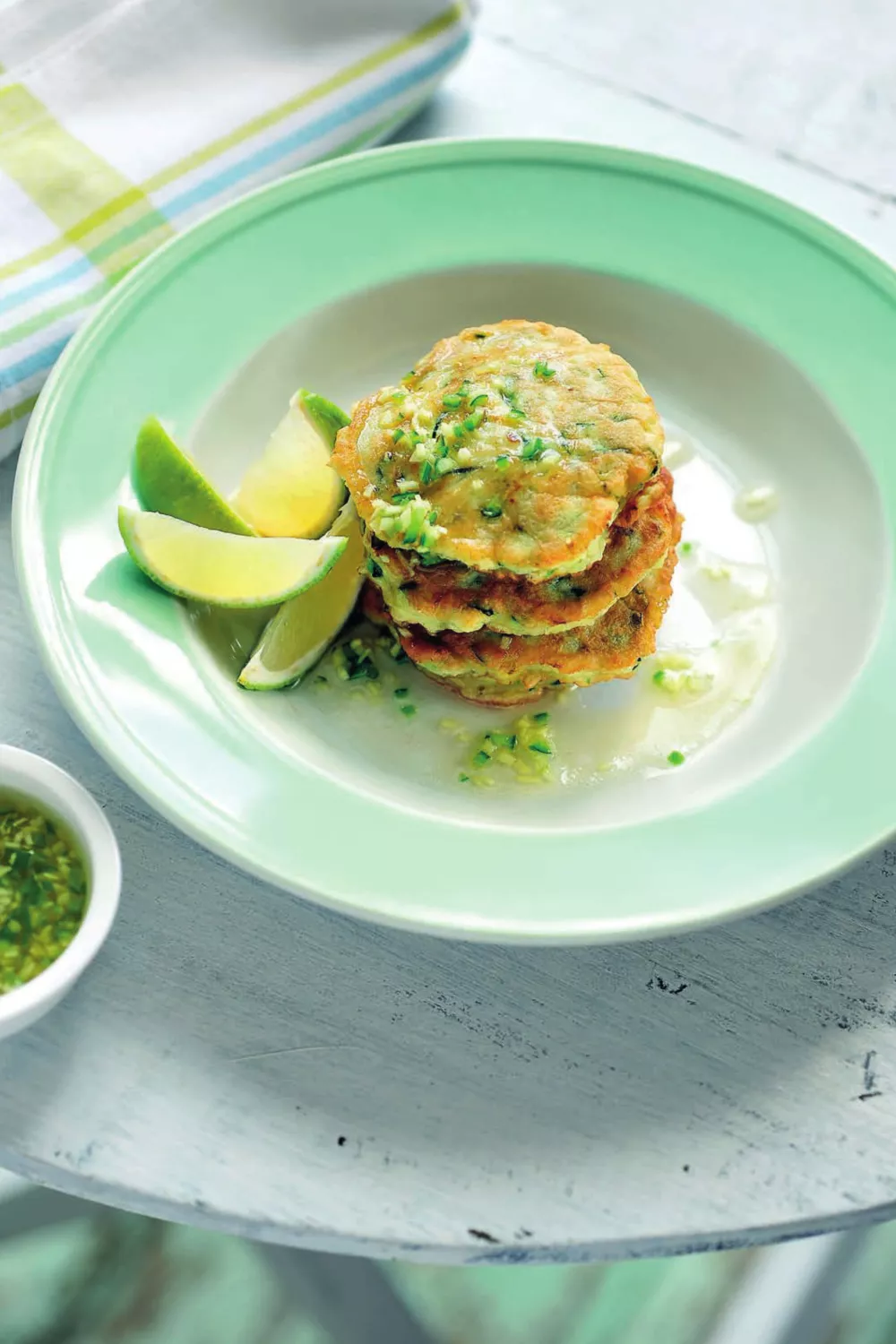 Malse courgettepannenkoekjes met gember en chili, overgoten met een zoete en pittige limoengembersiroop, combineren frisse courgette met warme gember en een vleugje hitte. Het eenvoudige beslag van geraspte courgette, ei, knoflook en bloem wordt in arachideolie goudbruin gebakken voor een krokante buitenkant en zachte binnenkant. Ideaal als lichte lunch, borrelsnack of zomerse maaltijd en snel te maken voor doordeweekse avonden.