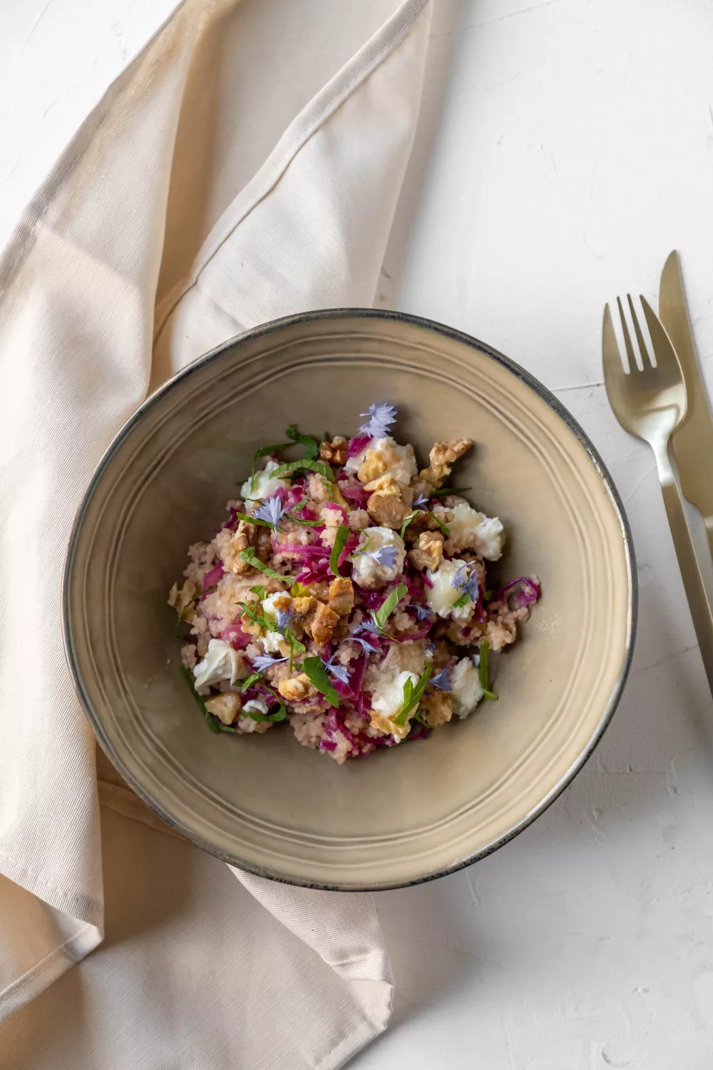 Couscous met rodekool, geitenkaas en appel