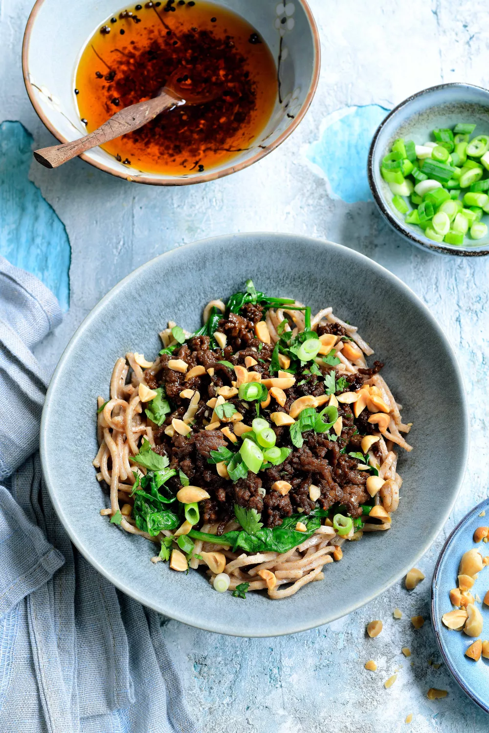 Stappenplan om recept “Dandan noedels met hoisin gehakt” te bereiden