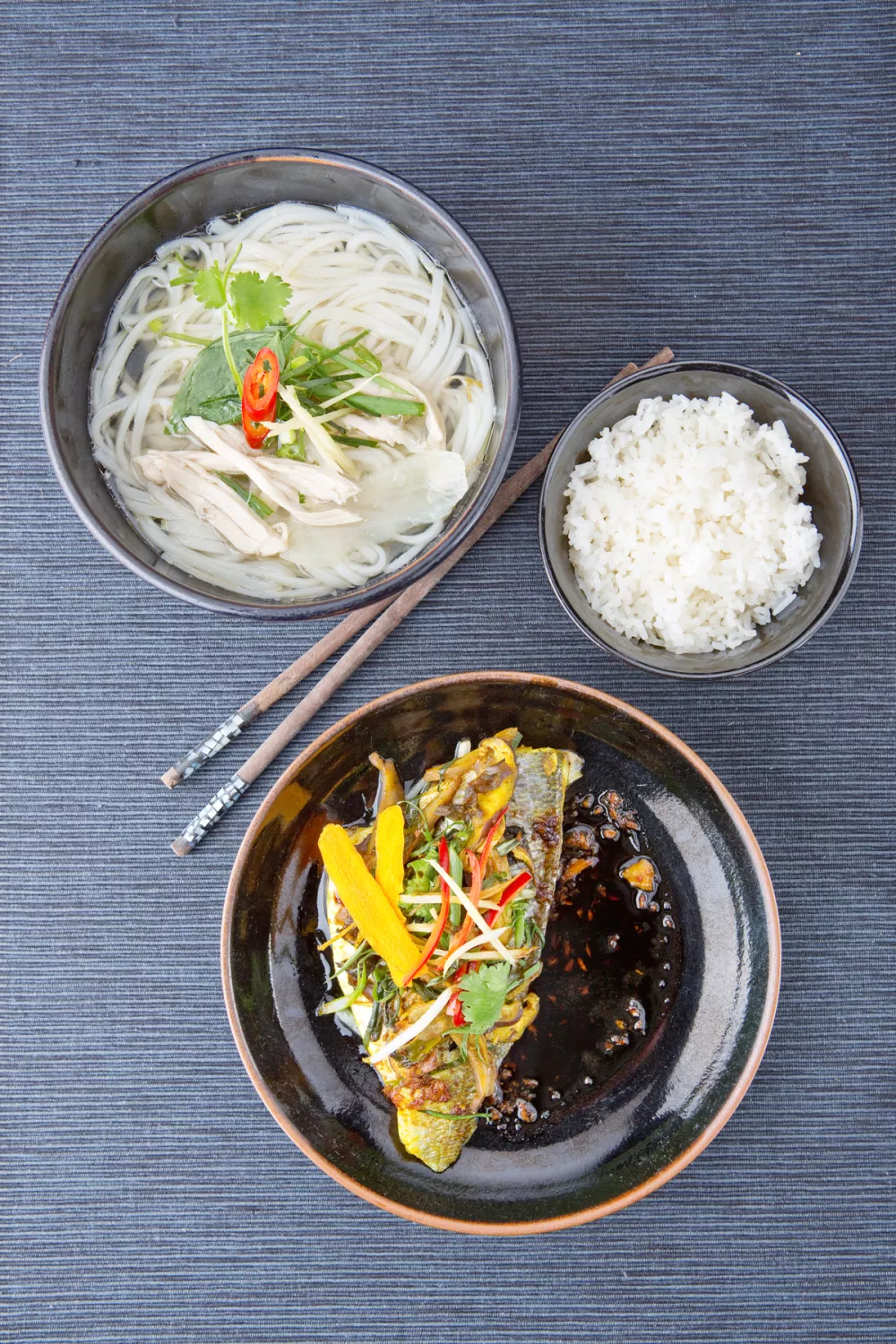 Dresseer de gestoomde vis op een bord. Giet er de hete saus over. Werk af met gesneden koriander en lente-ui. Serveer met rijst en gestoomde groenten.