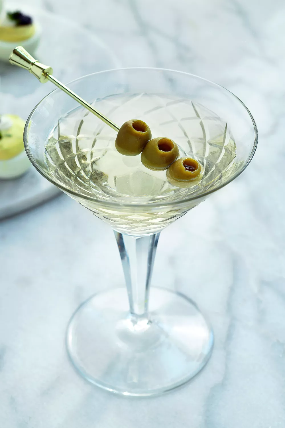 Een klassieke Dry Martini verenigt aromatische gin met droge vermout tot een elegante, frisse cocktail die zich uitstekend leent als aperitief bij een chique diner, een zomerse avond of een intieme borrel. Door de ingrediënten met ijs te roeren (stirring) ontstaat een zijdezachte, gekoelde textuur en een paar olijven geven een zilt accent. Serveer in een gekoeld martiniglas voor optimale beleving.
