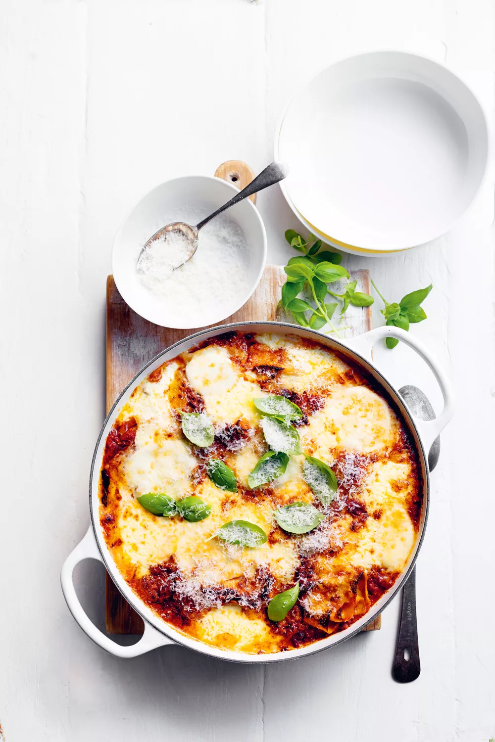 Tip:Heb je gedroogde lasagnevellen, leg ze dan 30 seconden in kokend water, of tot ze soepel worden, giet af en gebruik ze zoals je verse lasagne gebruikt.