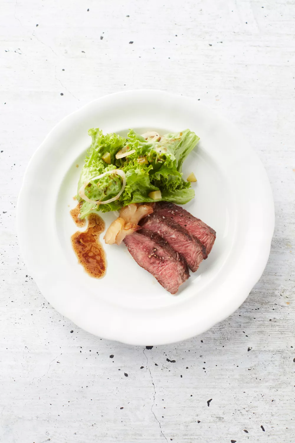 Stappenplan om recept “Entrecote met groene krulsla en bakvinaigrette” te bereiden