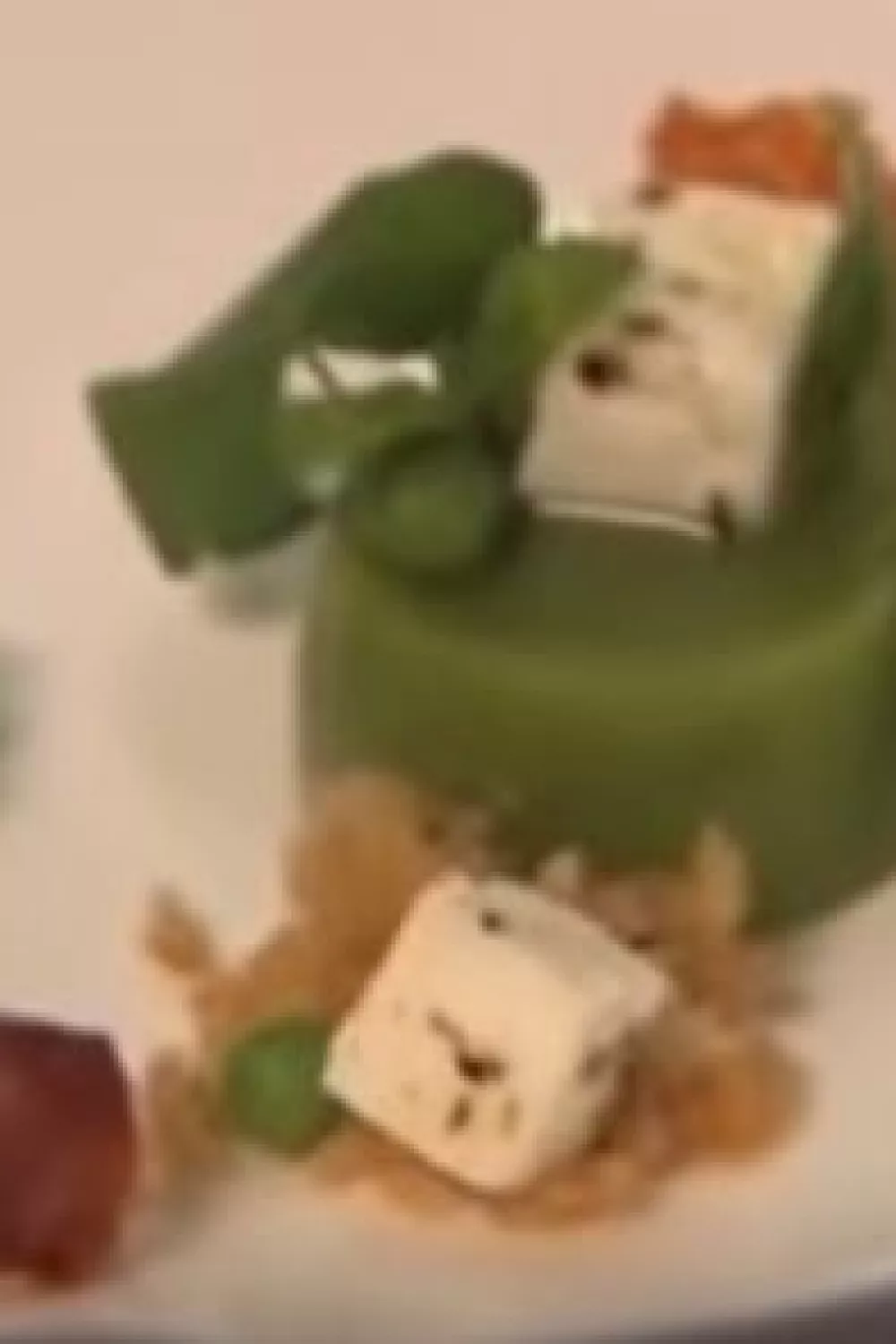 Een frisse groene erwtensoep met munt en dragon krijgt in Hof van Cleve stijl een elegante twist dankzij een opgesteven flan en krokante chorizocrumble. Blancheren en pureren levert een fluweelachtige basis, de chorizo wordt zacht in olie gegaard en samen met feta, croutons en rucola zorgt hij voor een pittige zomerse finishing touch.