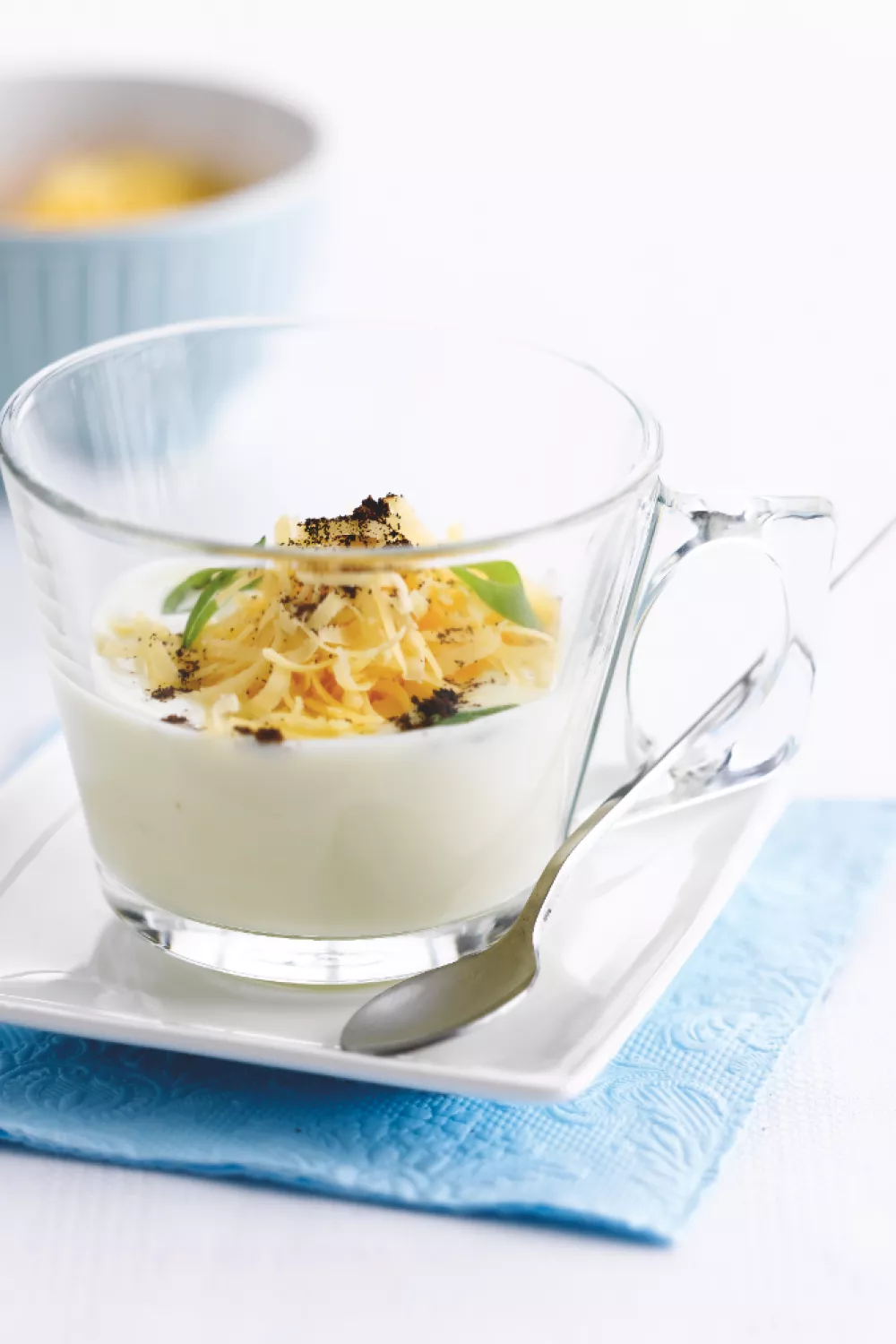 Luchtige espuma van aardappel met een fluwelige roombasis, aromatische tijm en rozemarijn en een subtiele toets koffiepoeder die het hartige karakter verdiept. Deze elegante amuse of klein voorgerecht combineert Campina Vol & Romig, olijfolie en knoflook en wordt afgetopt met versgeraspte oude kaas en lenteui. Makkelijk te maken met blender en espumafles, ideaal voor feestjes in de herfst en winter of als verfijnde starter bij een diner.