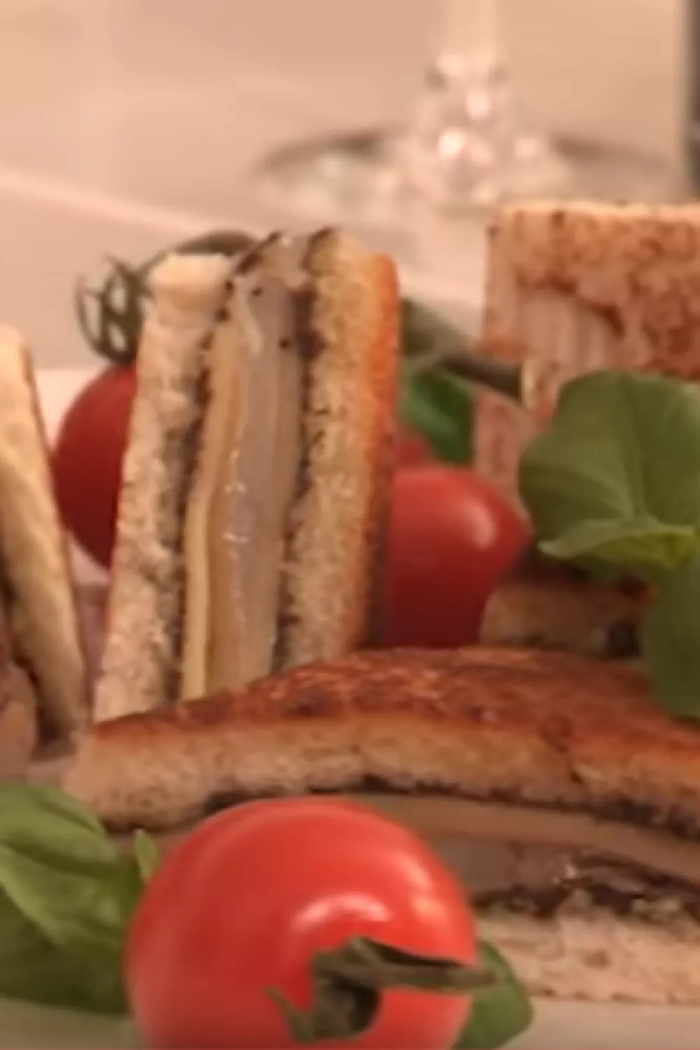 Besmeer elke snede toastbrood met de tapenade. Beleg de helft van de sneden toastbrood met een plakje ham en kaas. Leg hier de Sint-Jacobsvruchten op. Werk af met een extra plakje ham en kaas.