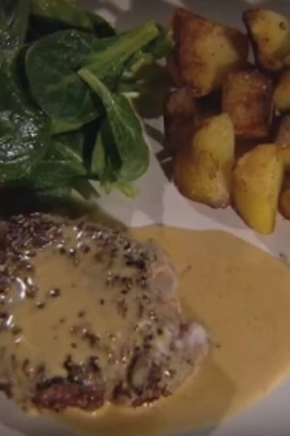 Deze klassieke filet pur au poivre combineert een krokante korst van geplette peperbolletjes met een romige cognacsaus op basis van room en kalfsfond, perfect voor een feestelijk diner. Geserveerd met goudbruine Charlotteblokjes en een frisse veldsla met citroenvinaigrette levert het een elegante, verwarmende maaltijd op. Technieken zoals dichtschroeien, flambéen en passeren geven de saus volle smaak en een verzorgde presentatie.