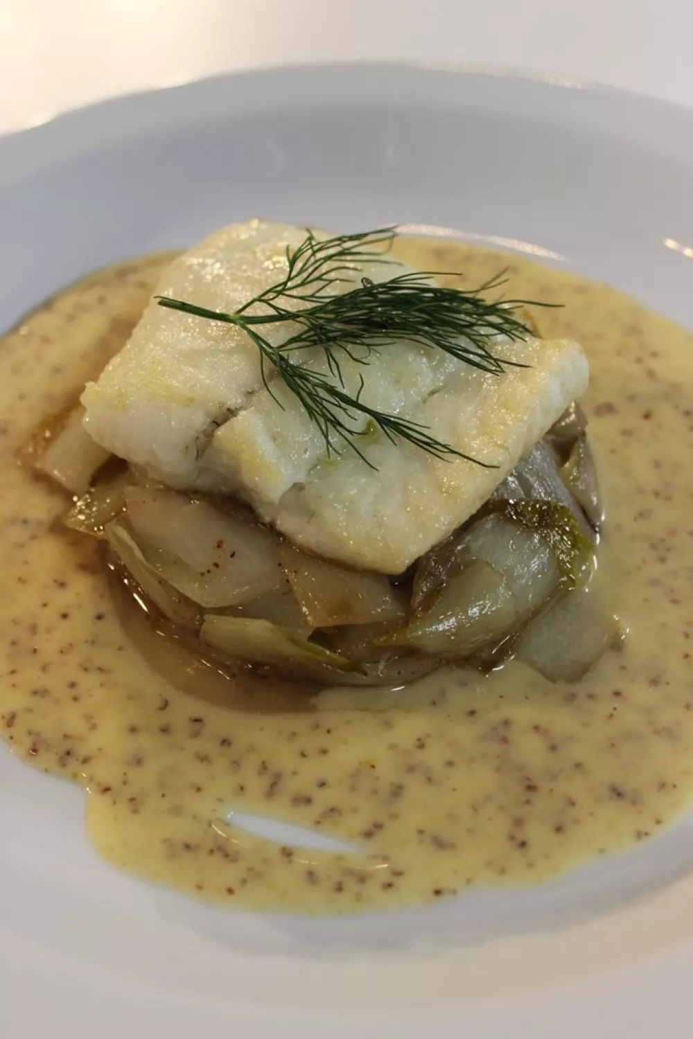 Filet van griet met gekarameliseerd witloof en mosterdsaus