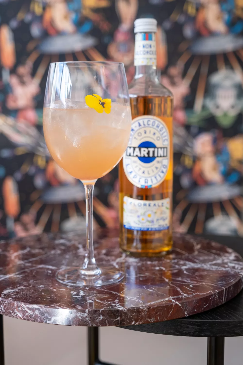 Vul een wijnglas met ijs. Voeg er Martini Florale, violettesiroop en vers pompelmoessap aan toe. Doe er nog een scheutje tonic bij en roer goed door. Werk af met een eetbaar bloemetje.