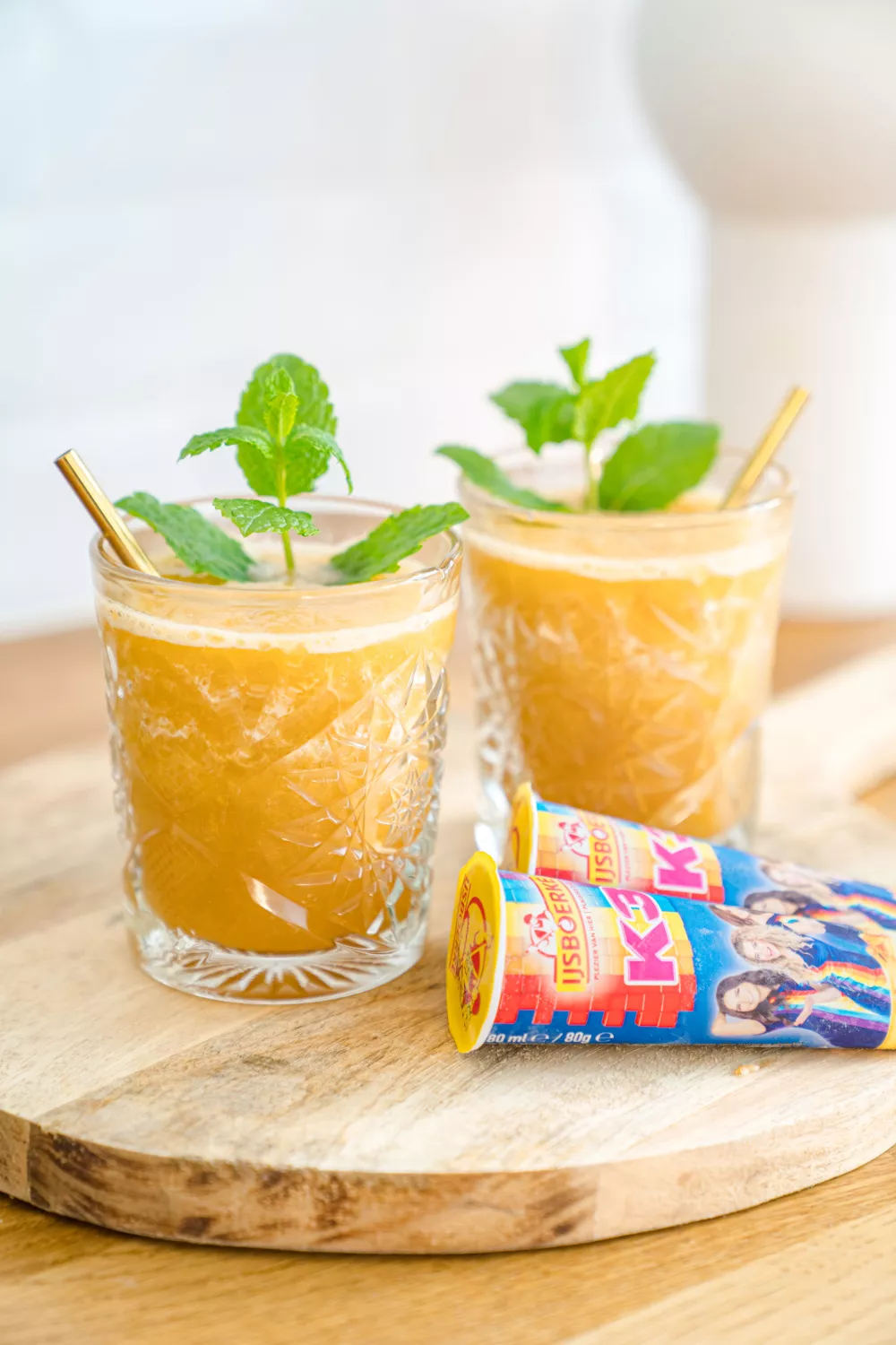 Deze Frozen Bellini mocktail combineert zomerse perziksmaak met een frisse limoenbite en maakt van elke borrel, picknick of brunch een feestelijk moment. Met K3 orange squeezie ijsjes, bevroren perzikstukjes, perzik iced tea en crushed ice maak je in de blender snel een romige, ijskoude slush. Afgewerkt met munt is hij ideaal voor warme dagen.