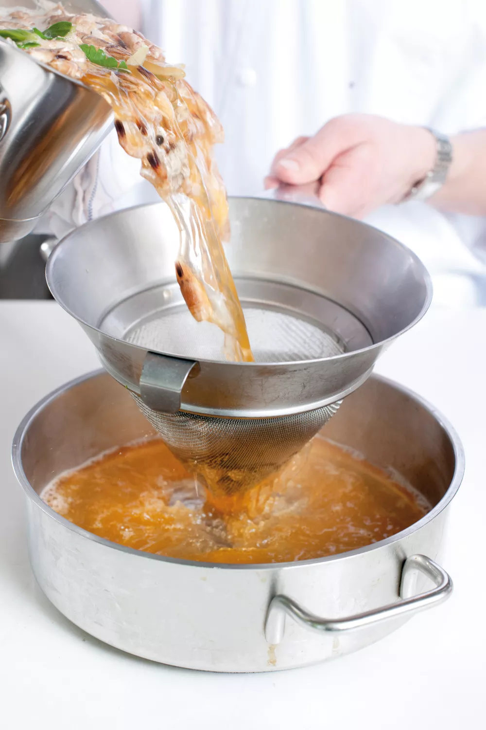 Zeef het vocht, zodat je een heldere fumet krijgt.