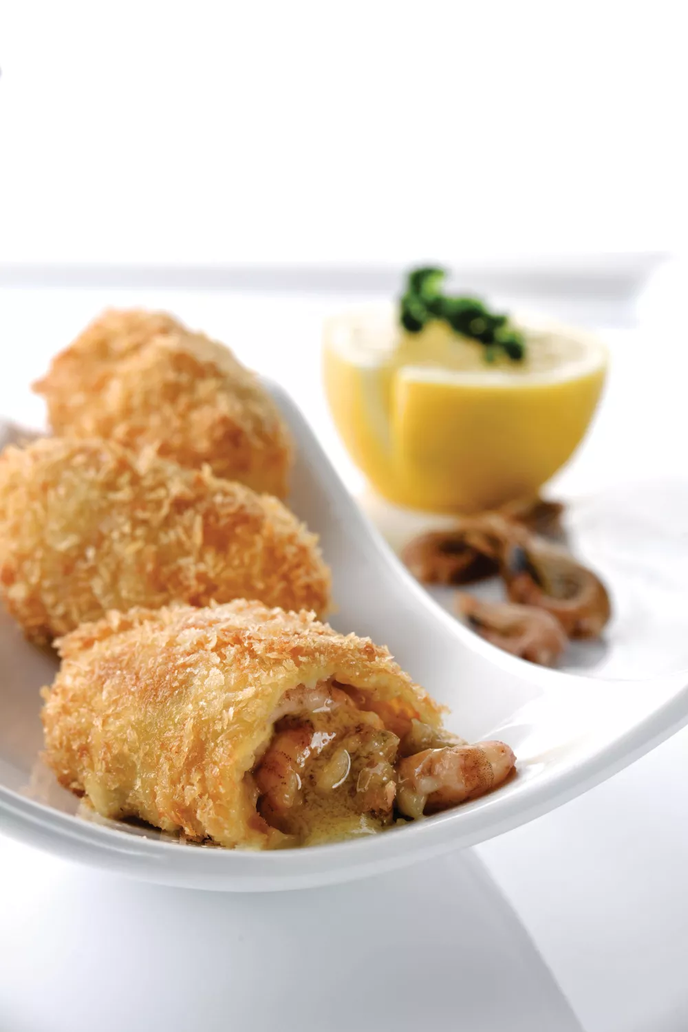 Heerlijke klassieke garnaalkroketjes met een romige garnalenvulling op basis van een roux en geconcentreerde garnalenbouillon, vol smaak door verse grijze garnalen en een vleugje citroen. Je maakt ze met kalfsbouillon, gelatine en eierdooiers, rolt ze door tarwebloem, ei en knapperige panko en frituurt ze goudbruin. Perfect als feestelijk voorgerecht of borrelhapje, geserveerd met gefrituurde peterselie en een partje citroen.